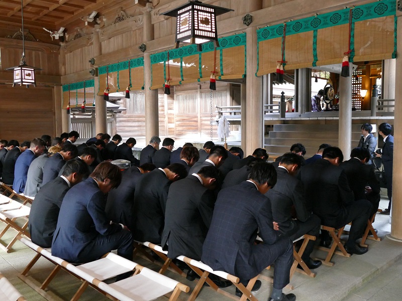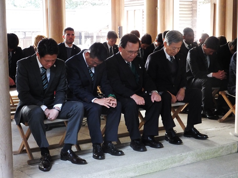 2月16日(木)岐阜市の伊奈波神社にて、FC岐阜後援会星野?夫会長、宮田博之社長、大木武監督、チームスタッフ、選手、フロントスタッフが今シーズンのチームの勝利と安全を祈願して、必勝祈願を執り行いました。