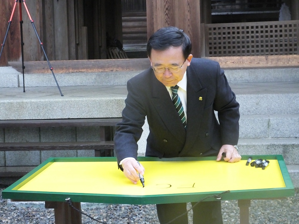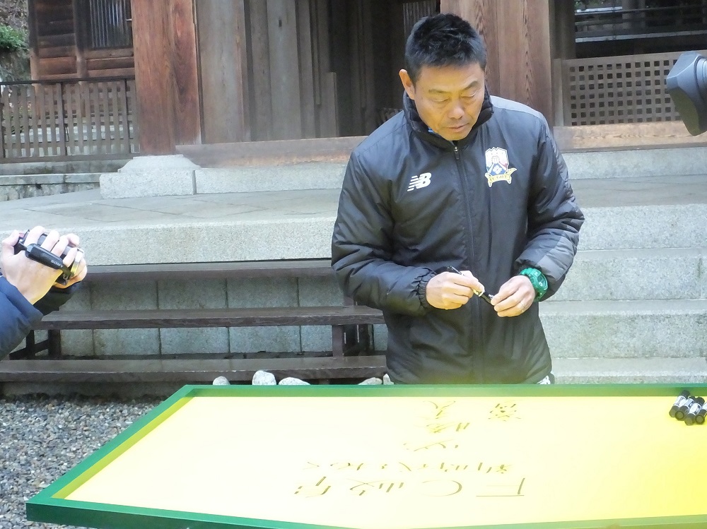 厳粛な神事に続いて、絵馬に2018シーズンの必勝の願いを込めて、サインを書き込みました。