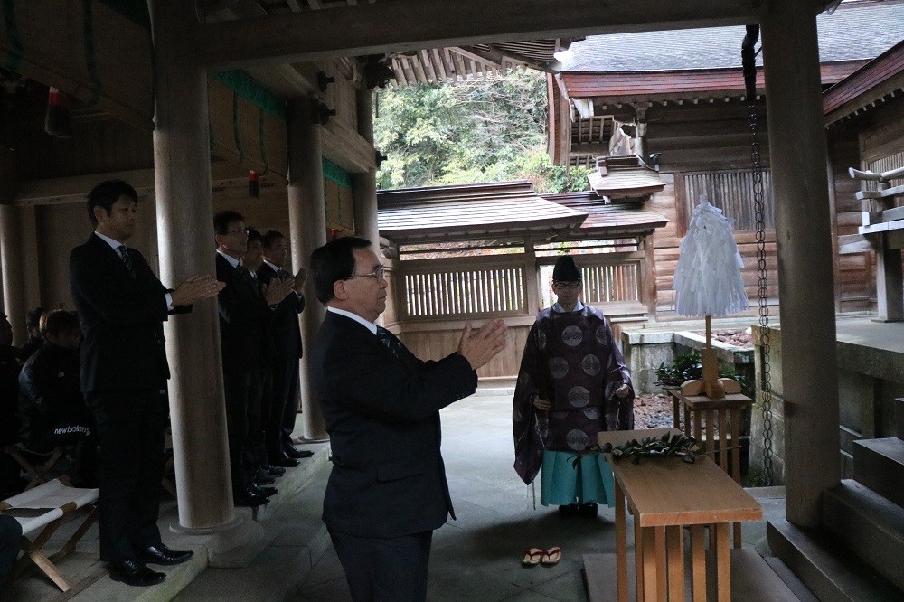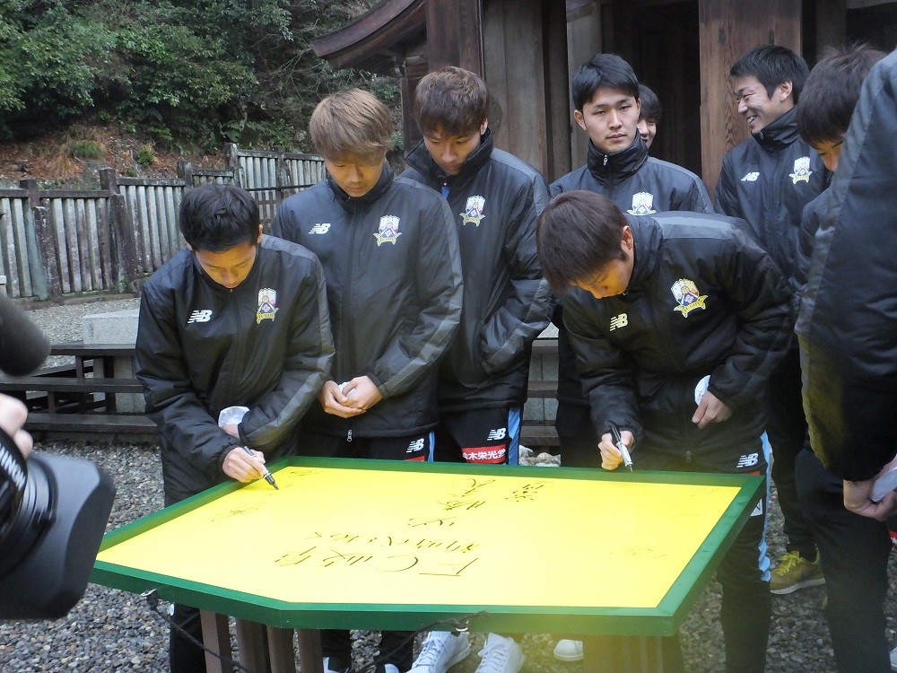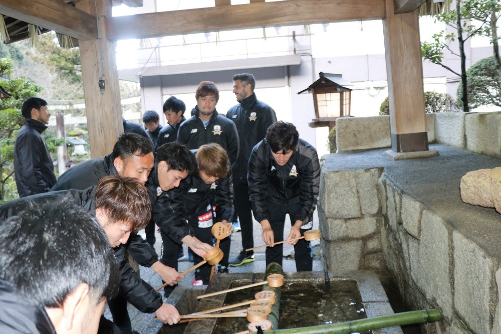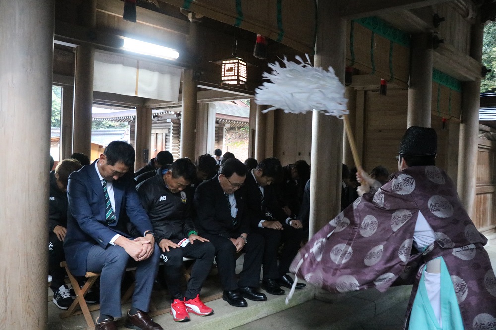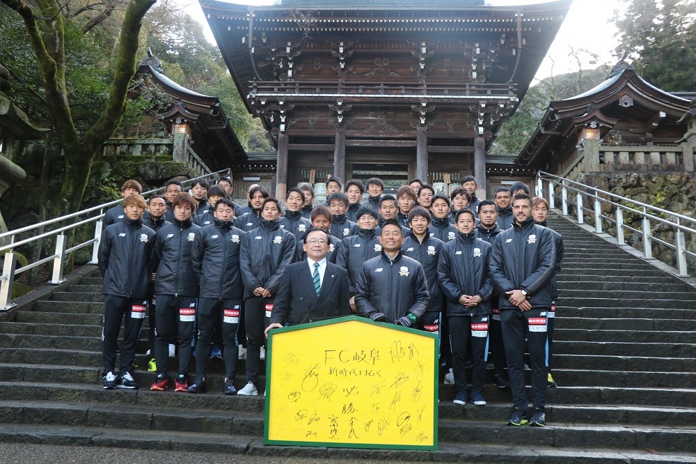 1月18日(木)岐阜市の伊奈波神社にて、FC岐阜、宮田博之社長、大木武監督、選手、チームスタッフ、フロントスタッフが今シーズンのチームの勝利と安全を祈願して、必勝祈願を執り行いました。