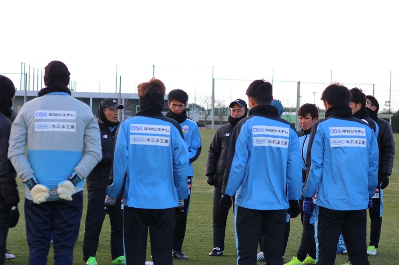 強風が吹く中での初日の練習でしたが、パス練習、試合を想定しての守備練習など2次キャンプに入り、