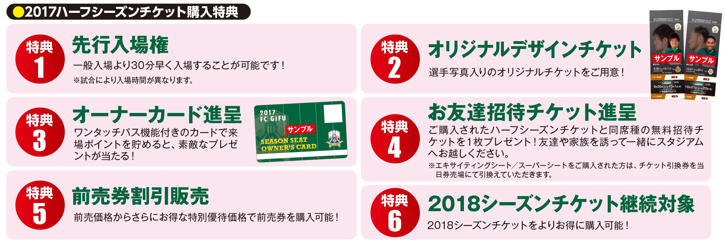 2017シーズン前半戦を観戦して、後半戦はもっとたくさん観戦したい人などお得に観戦をすることができます。ぜひこの機会にご購入いただき、後半戦も引き続きFC岐阜への応援をよろしくお願いします。