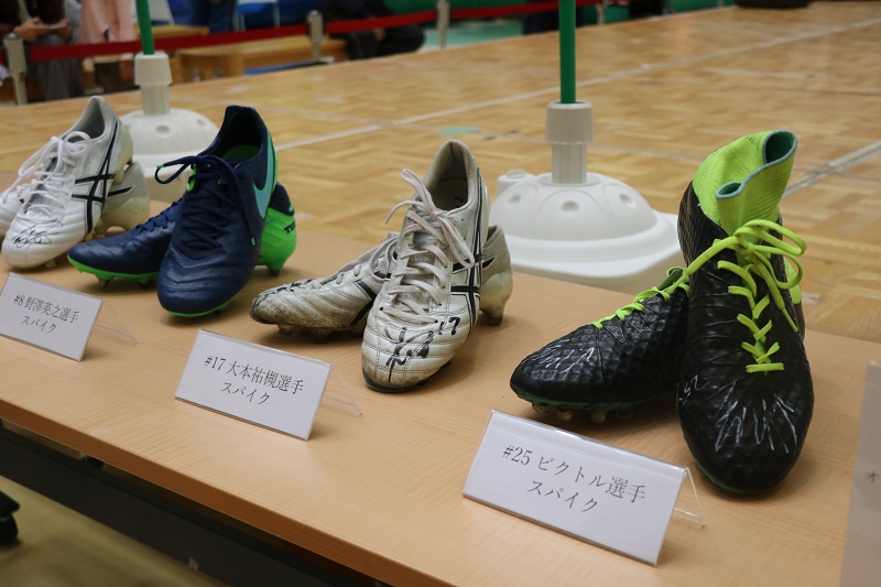 午後には、FC岐阜選手から提供いただいた私物スパイクと、2017シーズンユニフォームの「チャリティオークション」を行い、ファン・サポーターの方に落札して頂きました。