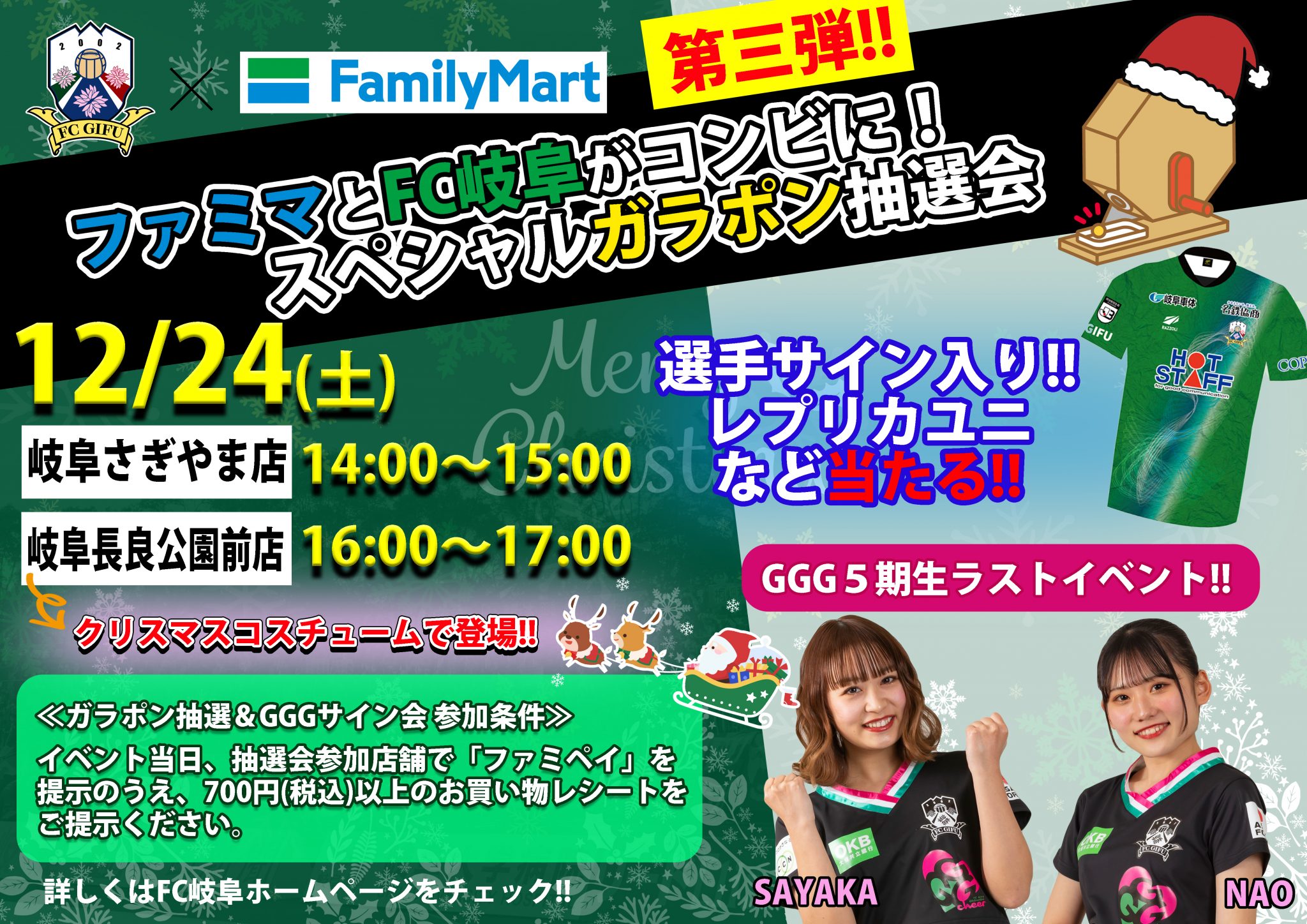 【12/20(火)更新】12/24(土)「ファミマとFC岐阜がコンビに!」スペシャルガラポン抽選会