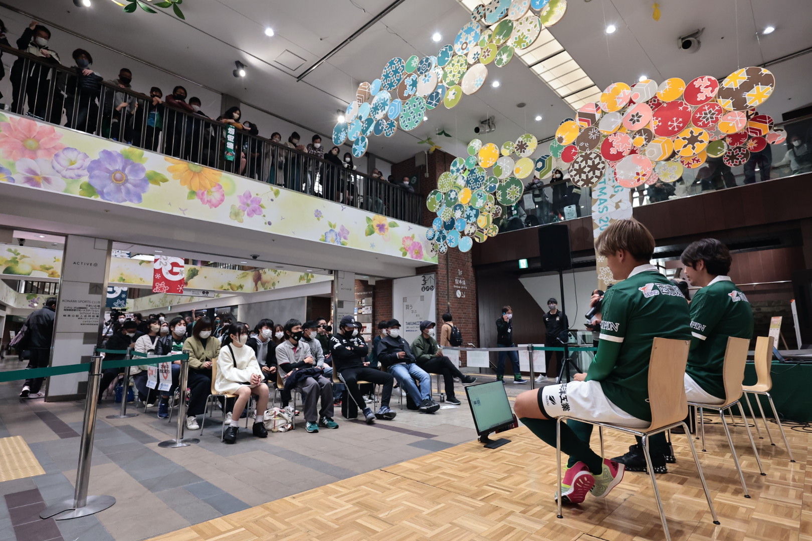皆さんの前で契約更新書にサインし、無事契約更新となりました。2023シーズンもよろしくお願いします!