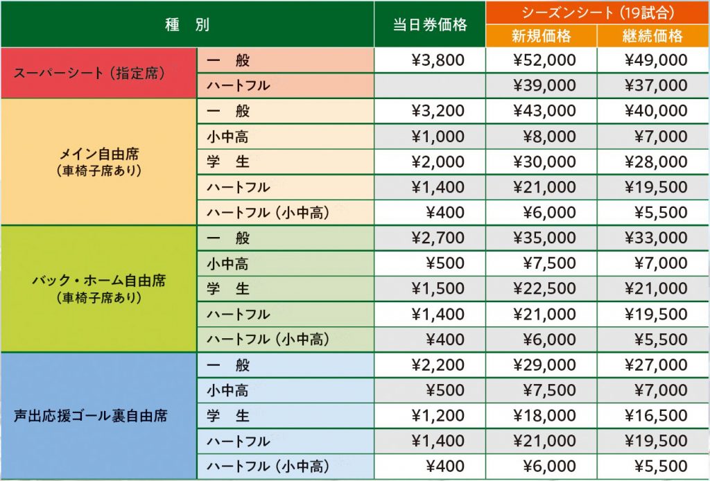 ※「継続価格」は2022シーズンシート購入者および、2022ファンクラブゴールド会員の方限定の価格です。