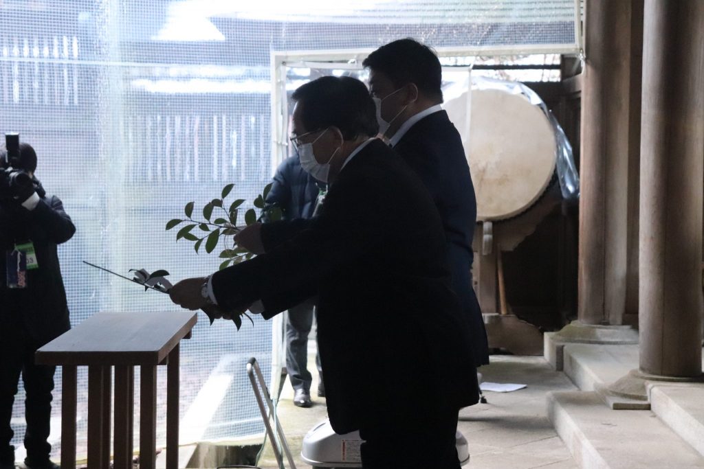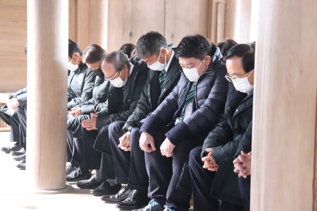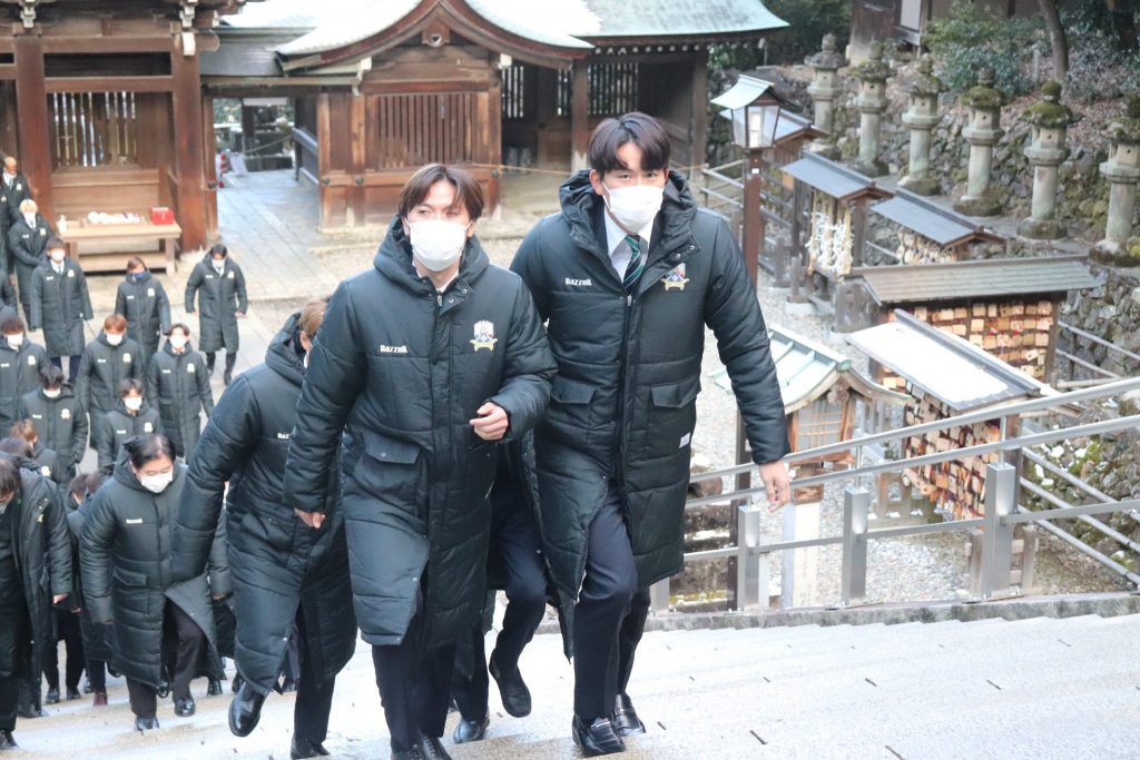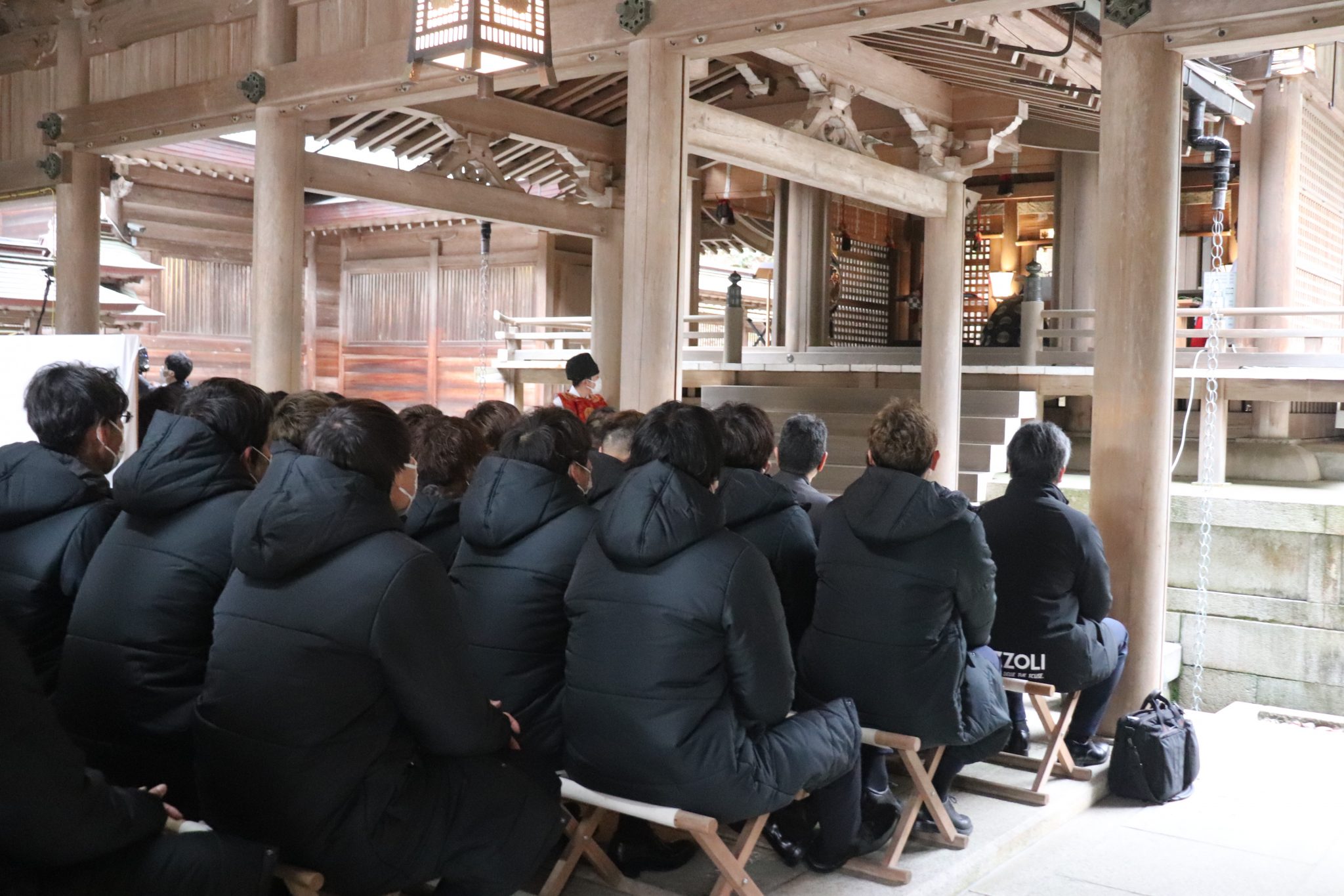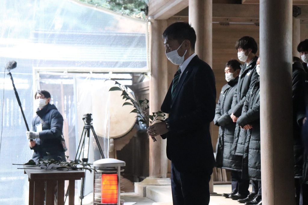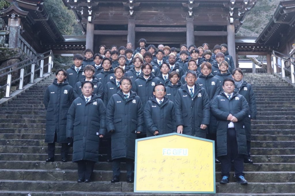 1月26日(木)岐阜市の伊奈波神社にて、FC岐阜後援会 副会長の川島政樹様・木下健一様、FC岐阜 宮田博之会長、小松裕志社長、上野優作監督、選手、チームスタッフ、フロントスタッフが、今シーズンのチームの勝利と安全を祈願して必勝祈願を執り行いました。