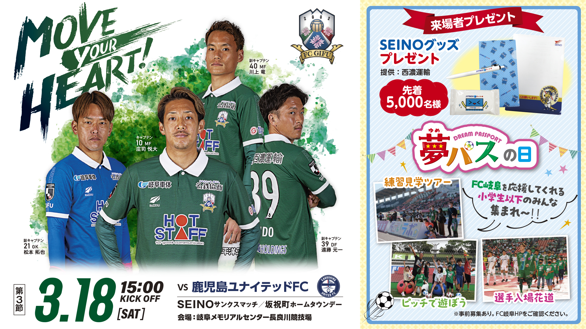 ※3/18追記【第3節☆試合情報】3月18日(土) 15:00 vs鹿児島ユナイテッドFC