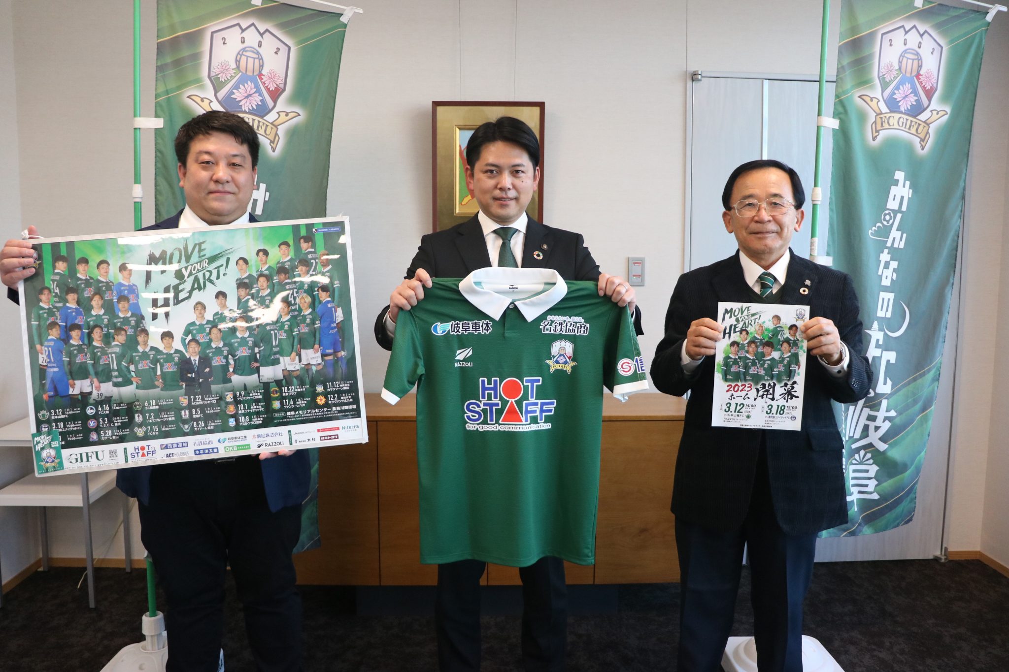 2023シーズンの開幕戦(3月5日(日)14時キックオフ ギラヴァンツ北九州戦)にあたり、2月28日(火)岐阜市役所にて、宮田 博之 会長、小松 裕志 社長が柴橋 正直 岐阜市長を表敬訪問させていただきました。