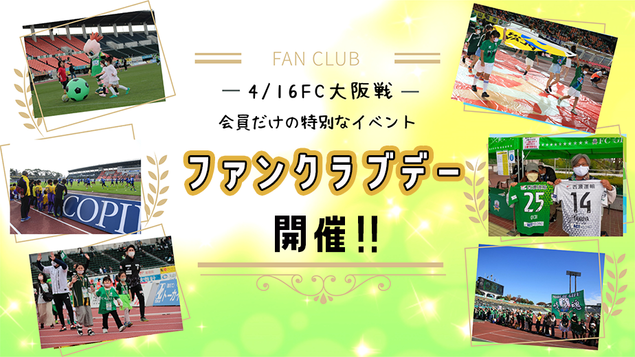 4月16日(日)FC大阪戦にて、『ファンクラブデー』を開催します!