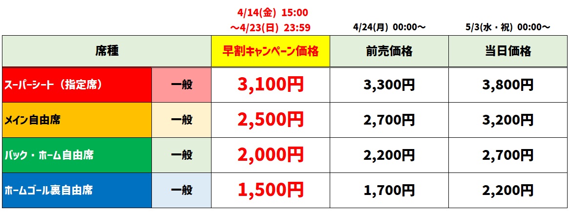※会員価格・小中高・ハートフル価格等、表に記載のない席種は「早割キャンペーン」の対象外です。