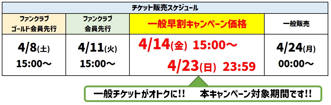 【4/25(火)更新 ご返金についてのご案内を追記いたしました。】チケット早割キャンペーンのお知らせ