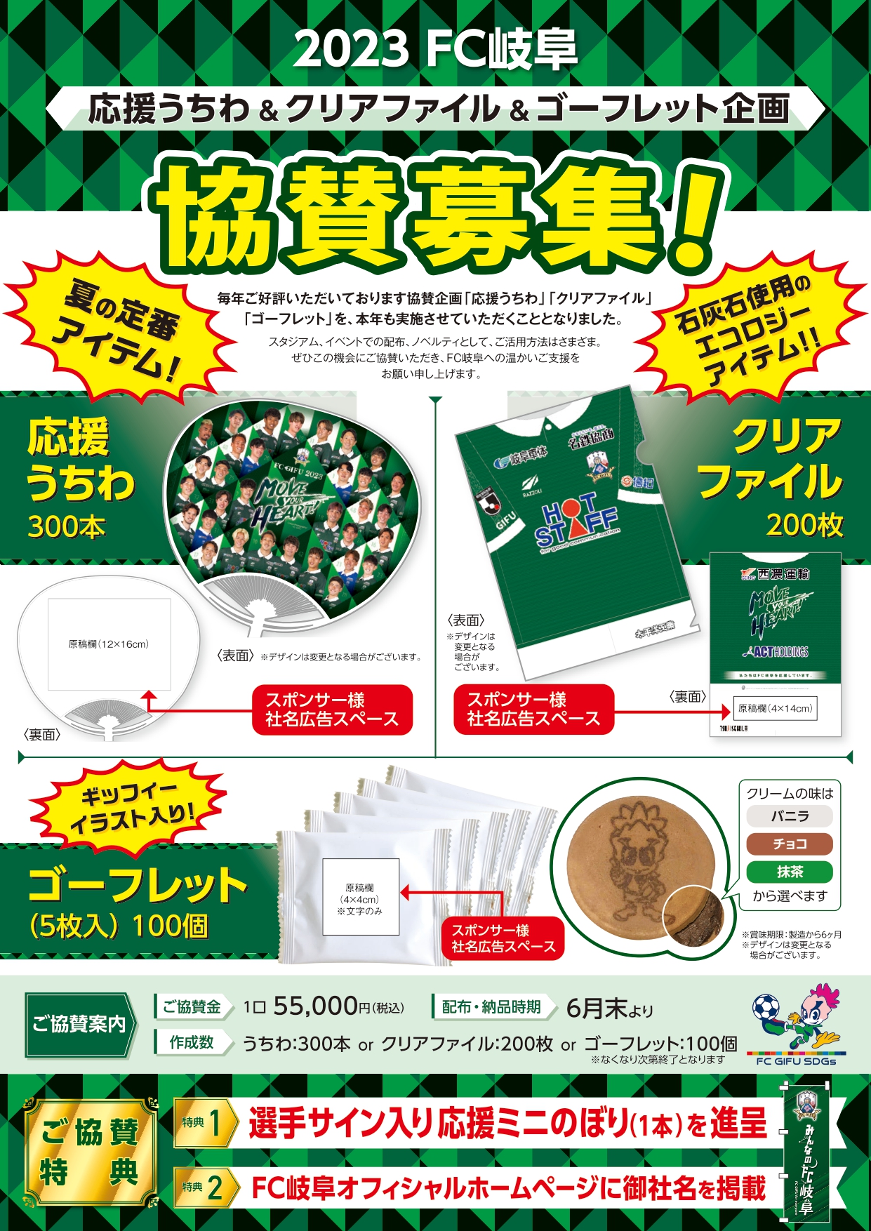 2023シーズン FC岐阜応援うちわ・応援クリアファイル・オリジナルゴーフレット企画協賛募集