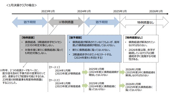 今回の訂正は2023年Jリーグ配分金等の予算変更があり、柔軟なクラブ経営を可能にするため、ルールの適用が2年延期されたことによるものです。