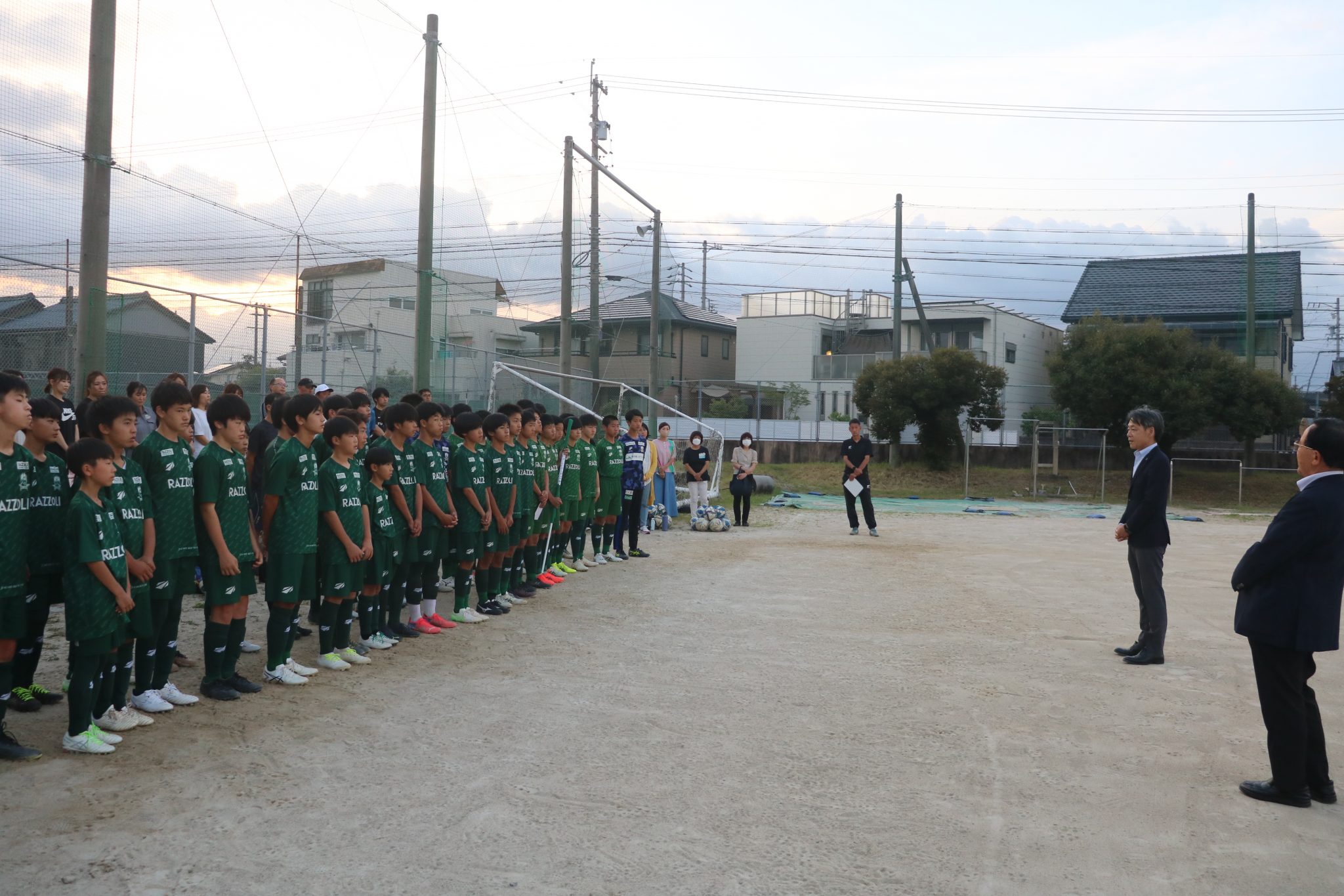 大変お忙しい中、開始式に駆けつけて頂きました生活協同組合コープぎふ 理事長 大坪 光樹 様よりアカデミーの選手たちへ温かい激励のお言葉をいただきました。