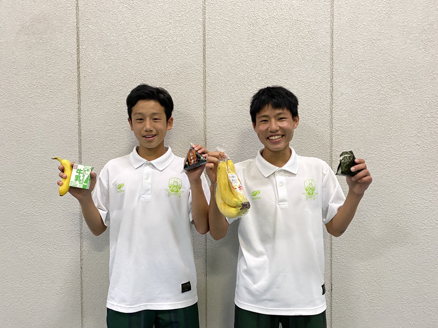 この日のトレーニング後から早速補食としておにぎりとバナナ、牛乳をいただきました。