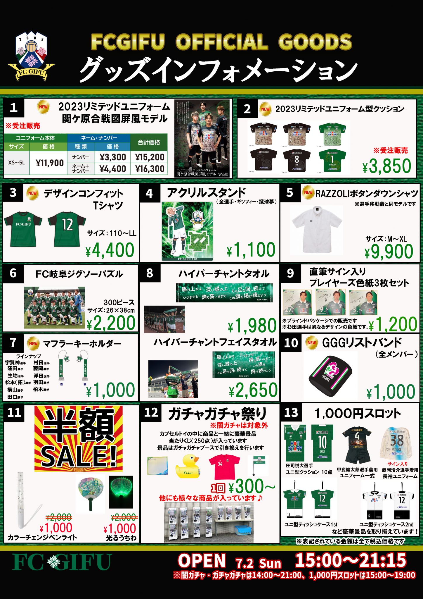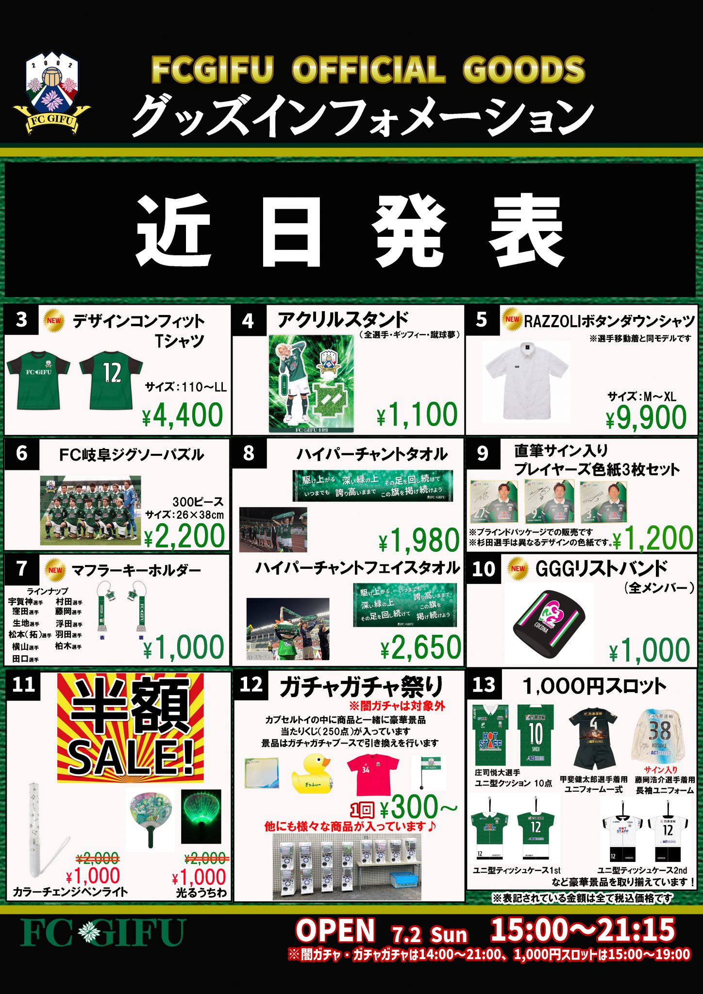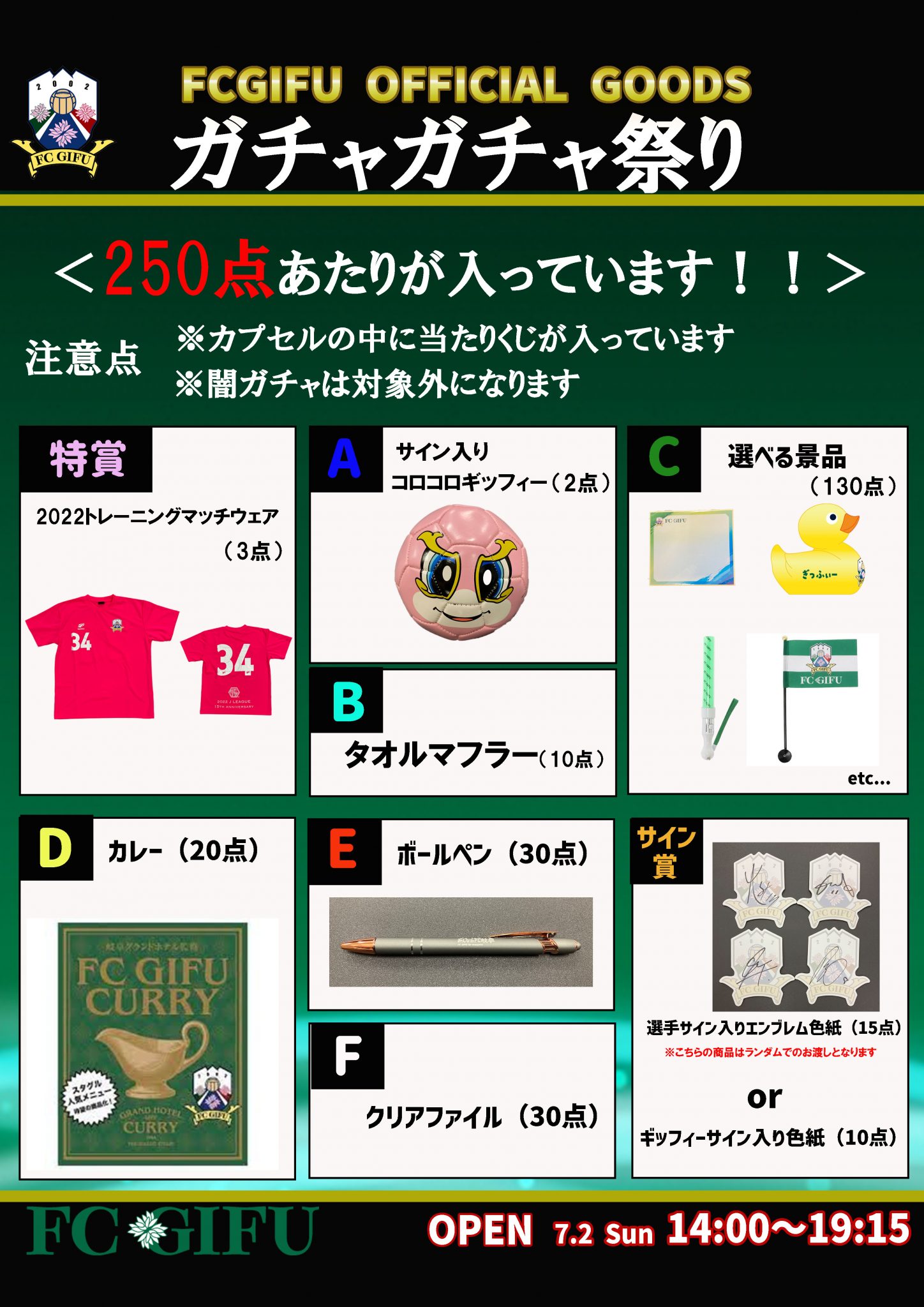 この試合グッズショップのオープン時間は「キックオフの4時間前」ガチャガチャは「キックオフの5時間前」になります。