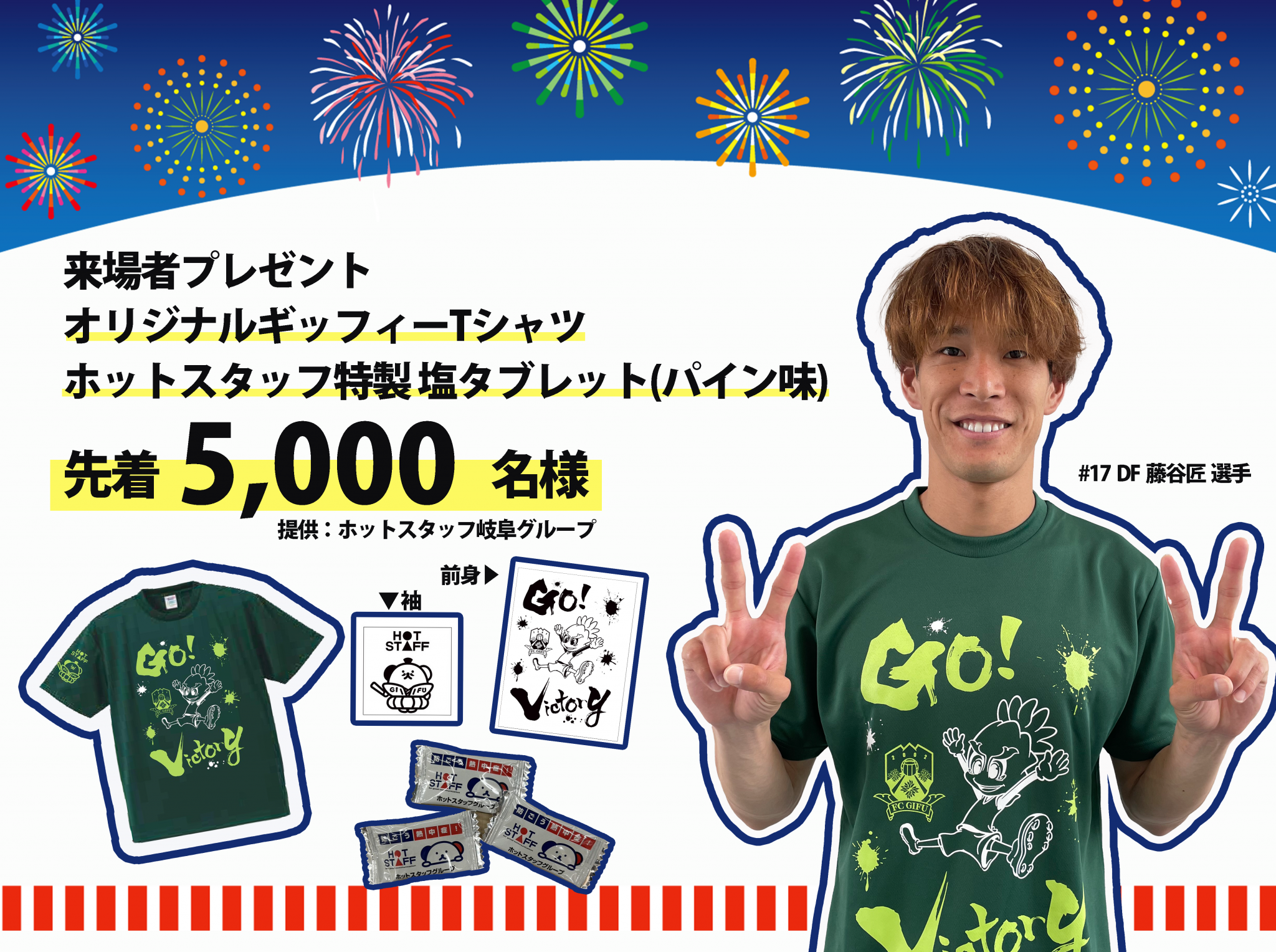 FC岐阜ファミリーが勝利した場合、ホットスタッフ岐阜グループより勝利者賞として、当日来場されたお客様にFC岐阜レプリカユニフォーム(FP)を抽選で50名様にプレゼントいたします。