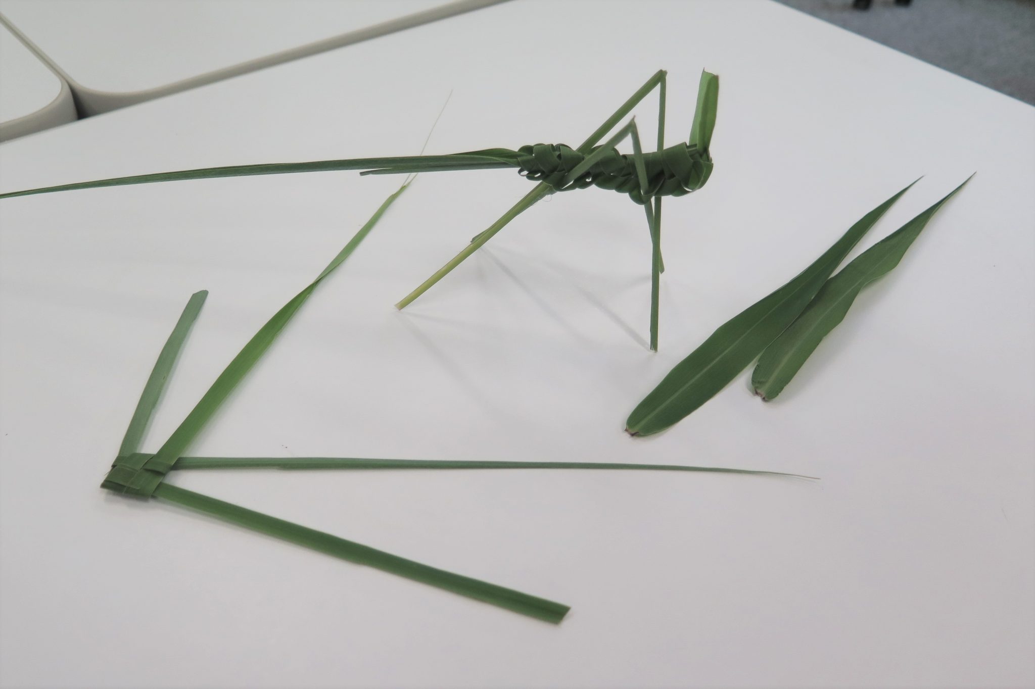 葉っぱでバッタや魚の形を作ってみよう!岐阜大学の脱炭素に関する研究や教育についてのパネルも展示します。