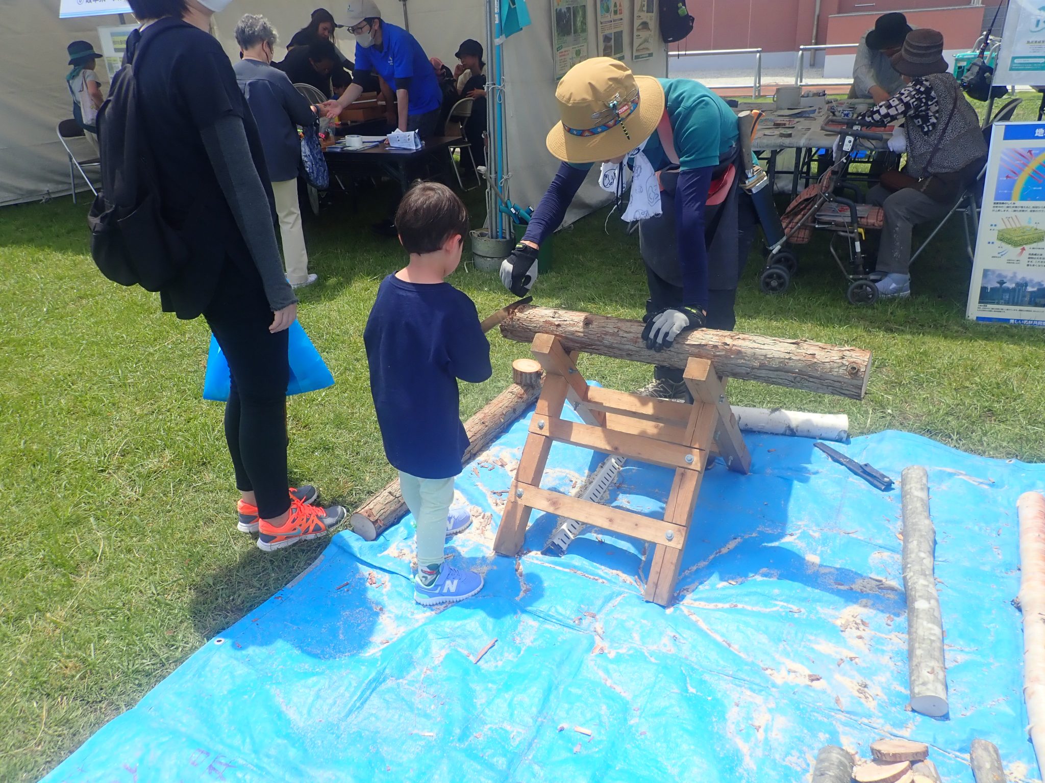 十六FG・岐阜県森林公社・木曽三川水源造成公社の連携による、木育ブースを設置します。本ブースでは、丸太切り、オリジナルコースターづくり、森林パネル展示を予定しております。脱炭素と関連の深い森林について、意識啓発を図ります。