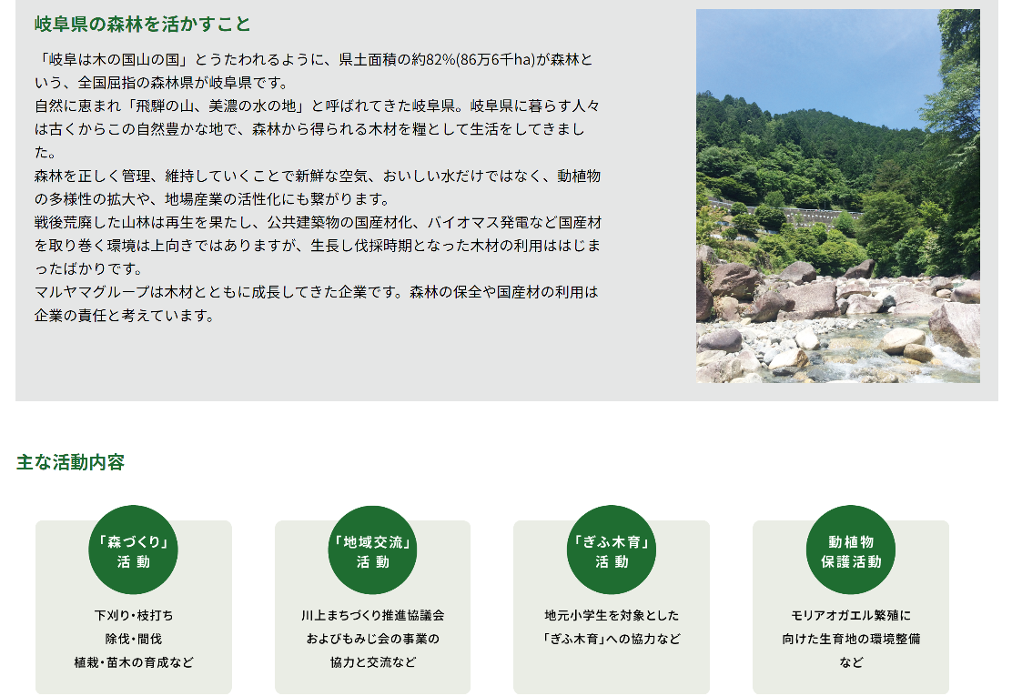 木材を取り扱う企業として、森林保全や脱炭素取り組みパネル展示を行い、木や森林の大切さを啓発します。