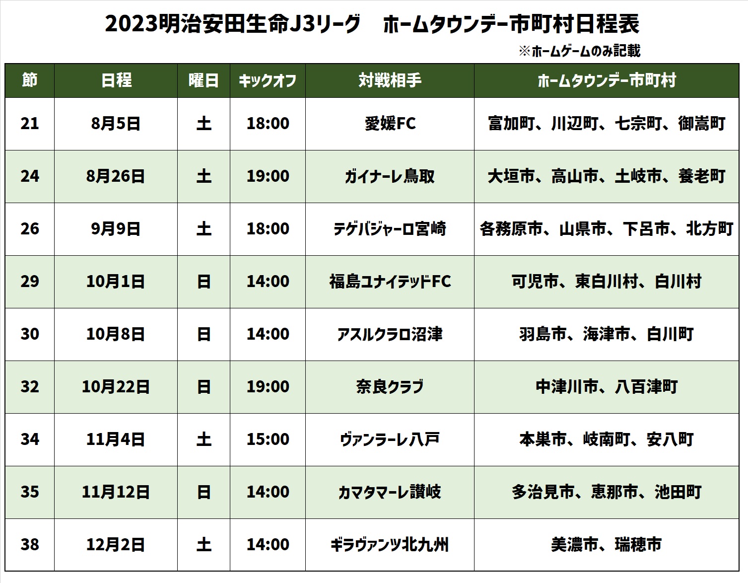 2023明治安田生命J3リーグ 後半日程・ホームタウンデー開催日程