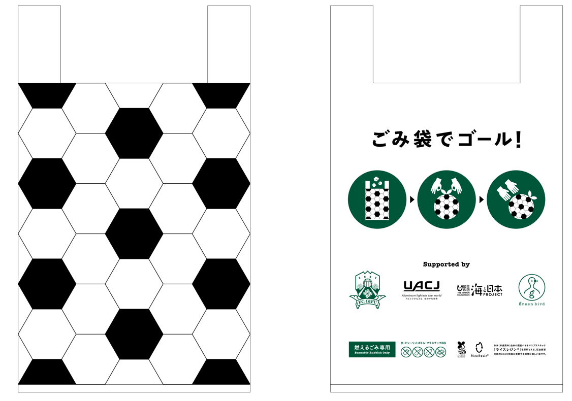 試合終了後、入場ゲート付近に設置される芝生のミニコートで、ごみ袋でゴールを決めて、みんなでごみを残さない試合をつくりましょう!