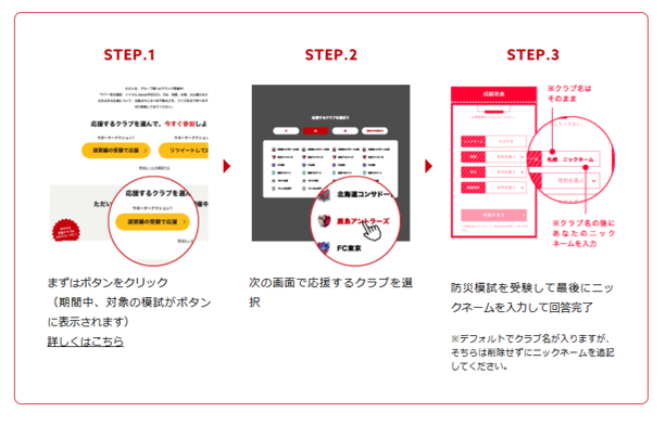 一人でも多くの方が参加することで、応援クラブの勝利につながります。
