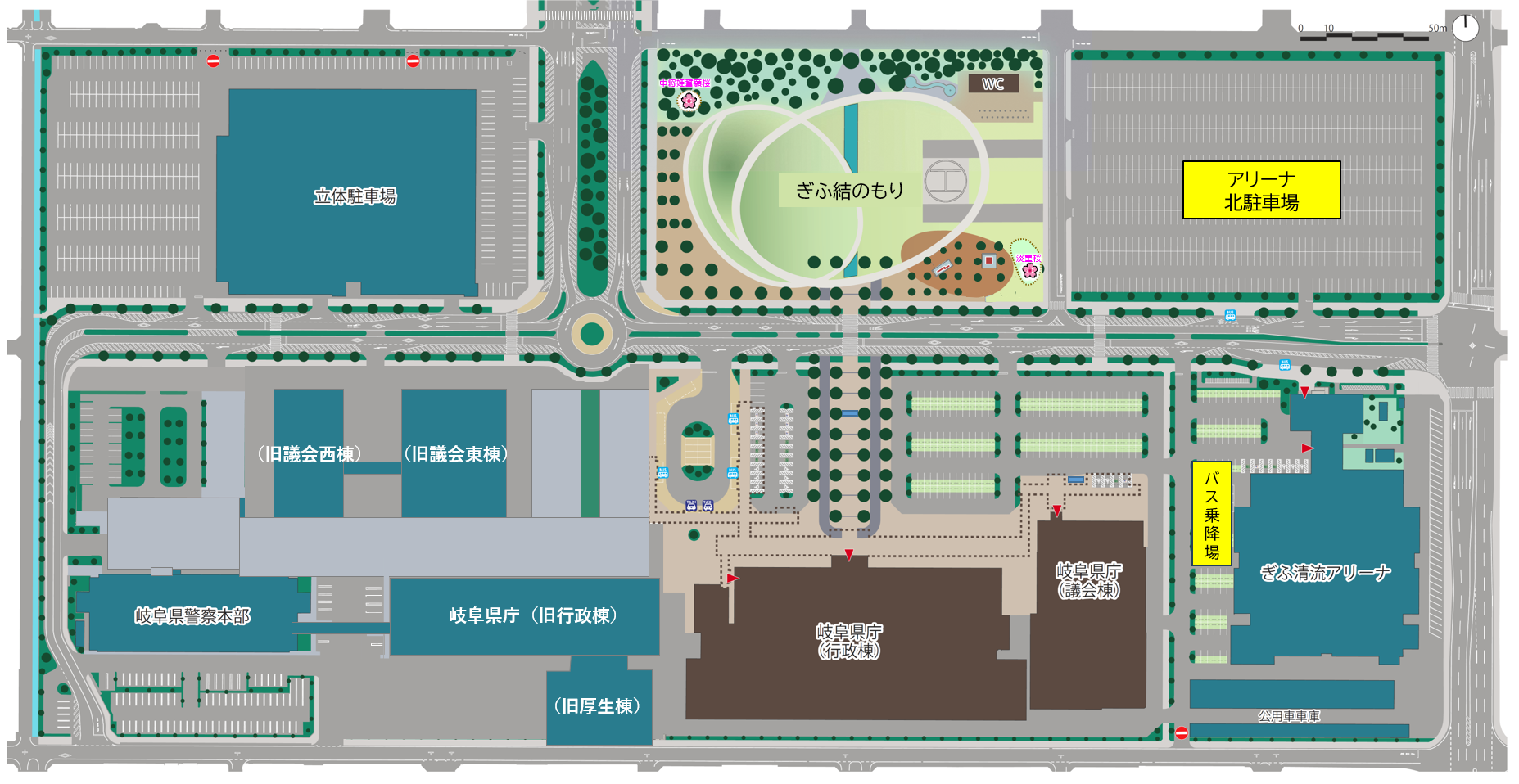 お客様駐車場:アリーナ北駐車場バス乗降場:OKBぎふ清流アリーナ西側