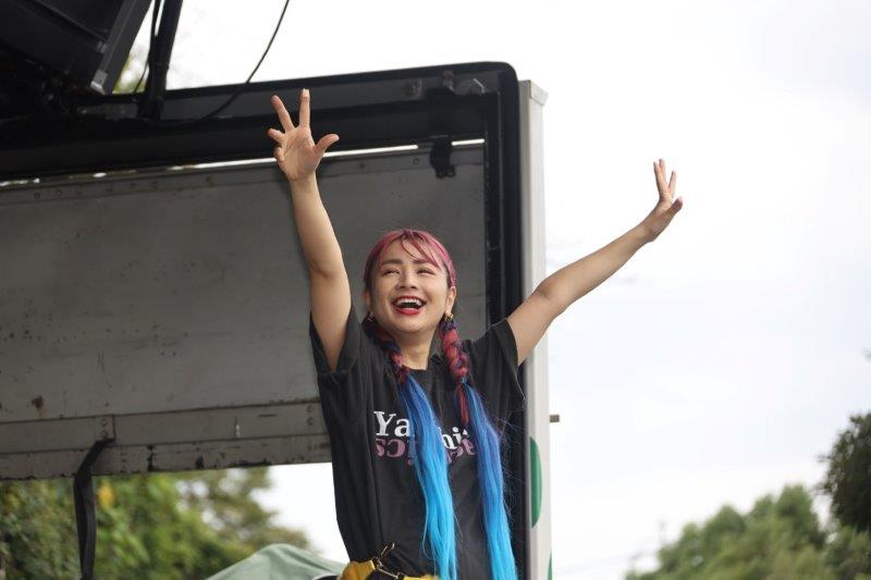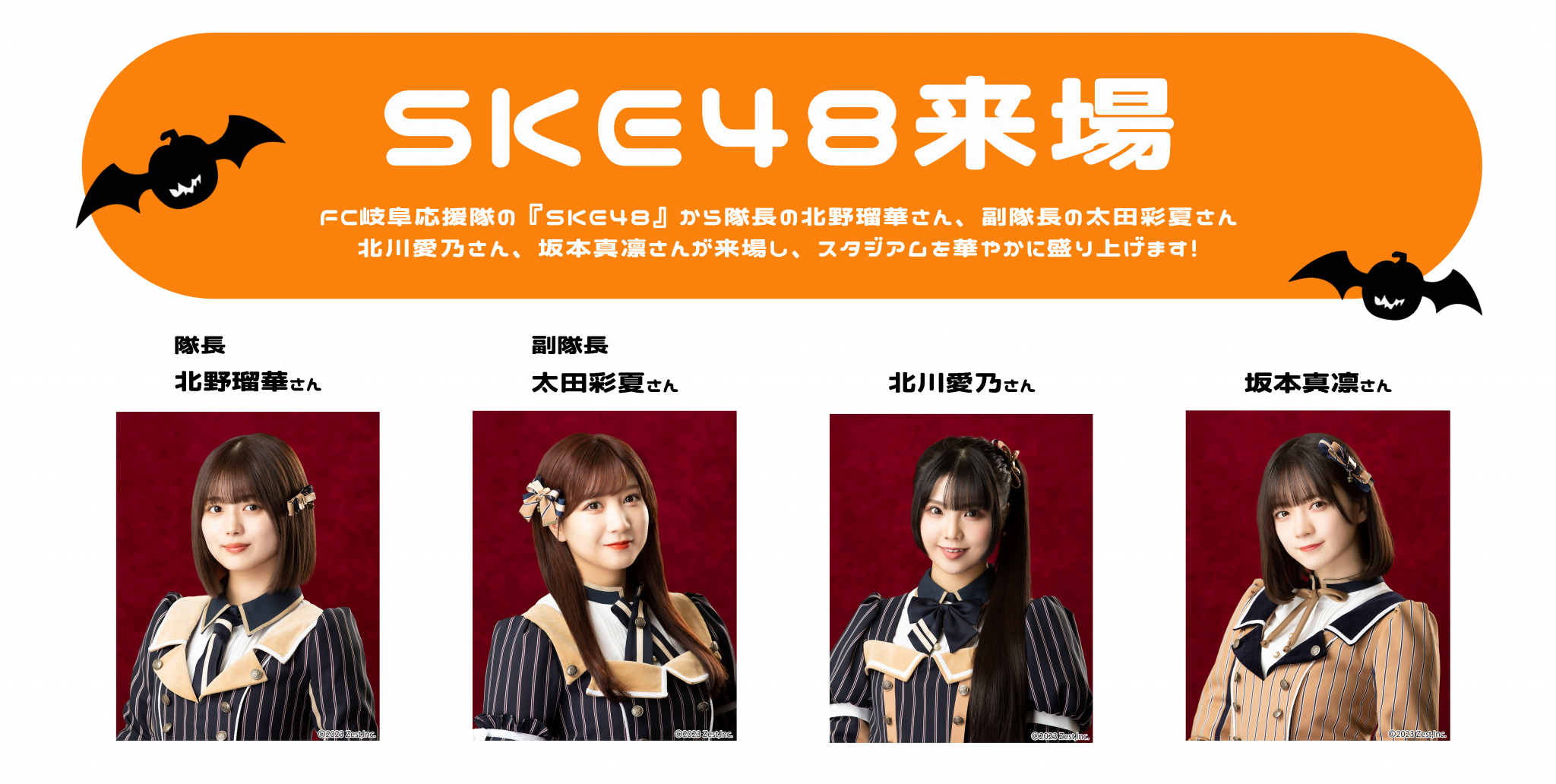 FC岐阜応援隊の『SKE48』から隊長の北野瑠華さん、副隊長の太田彩夏さん、北川愛乃さん、坂本真凛さんが来場し、スタジアムを華やかに盛り上げます!