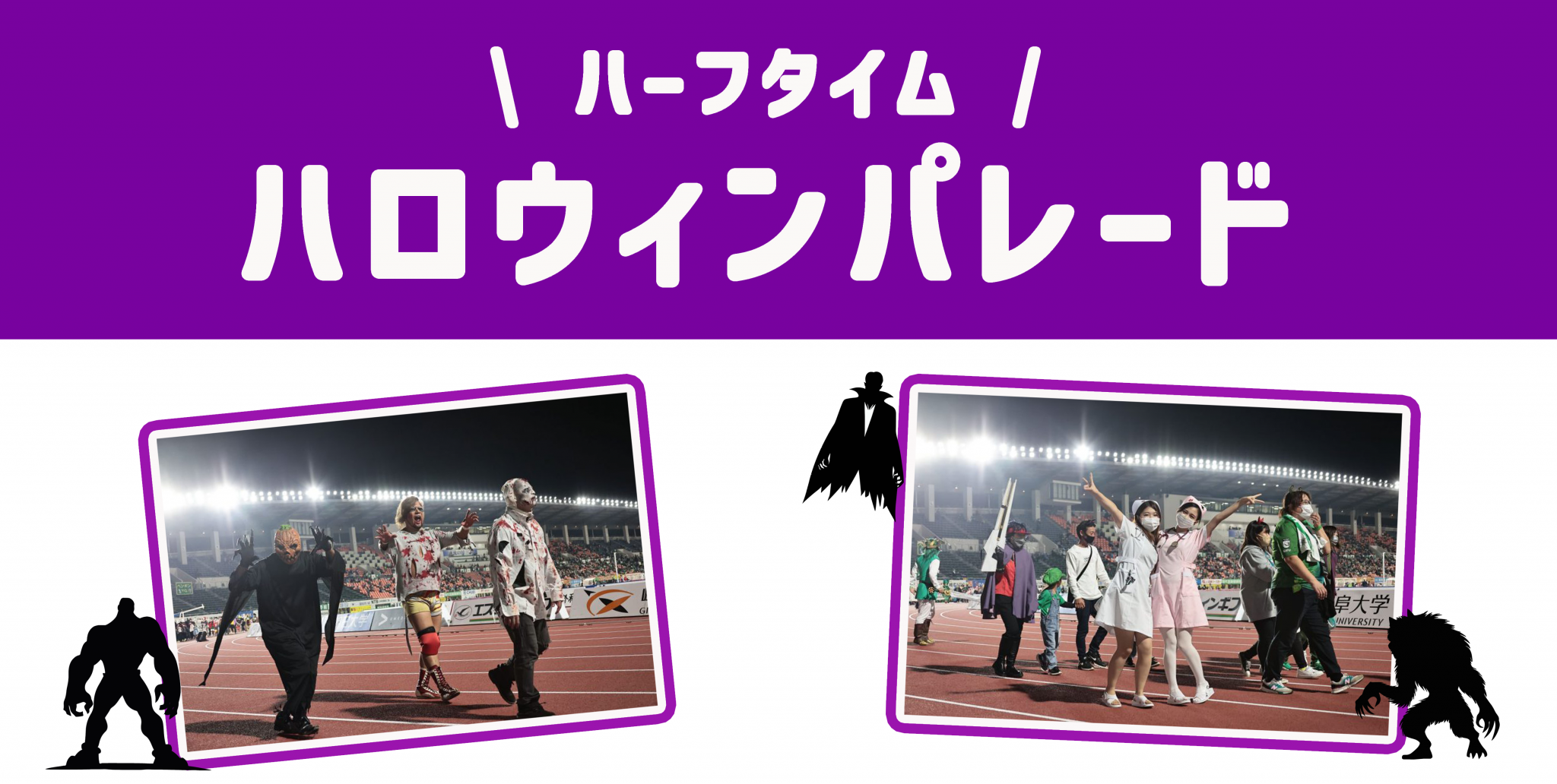 ハーフタイムにピッチの周りを一周する「ハロウィンパレード」♪