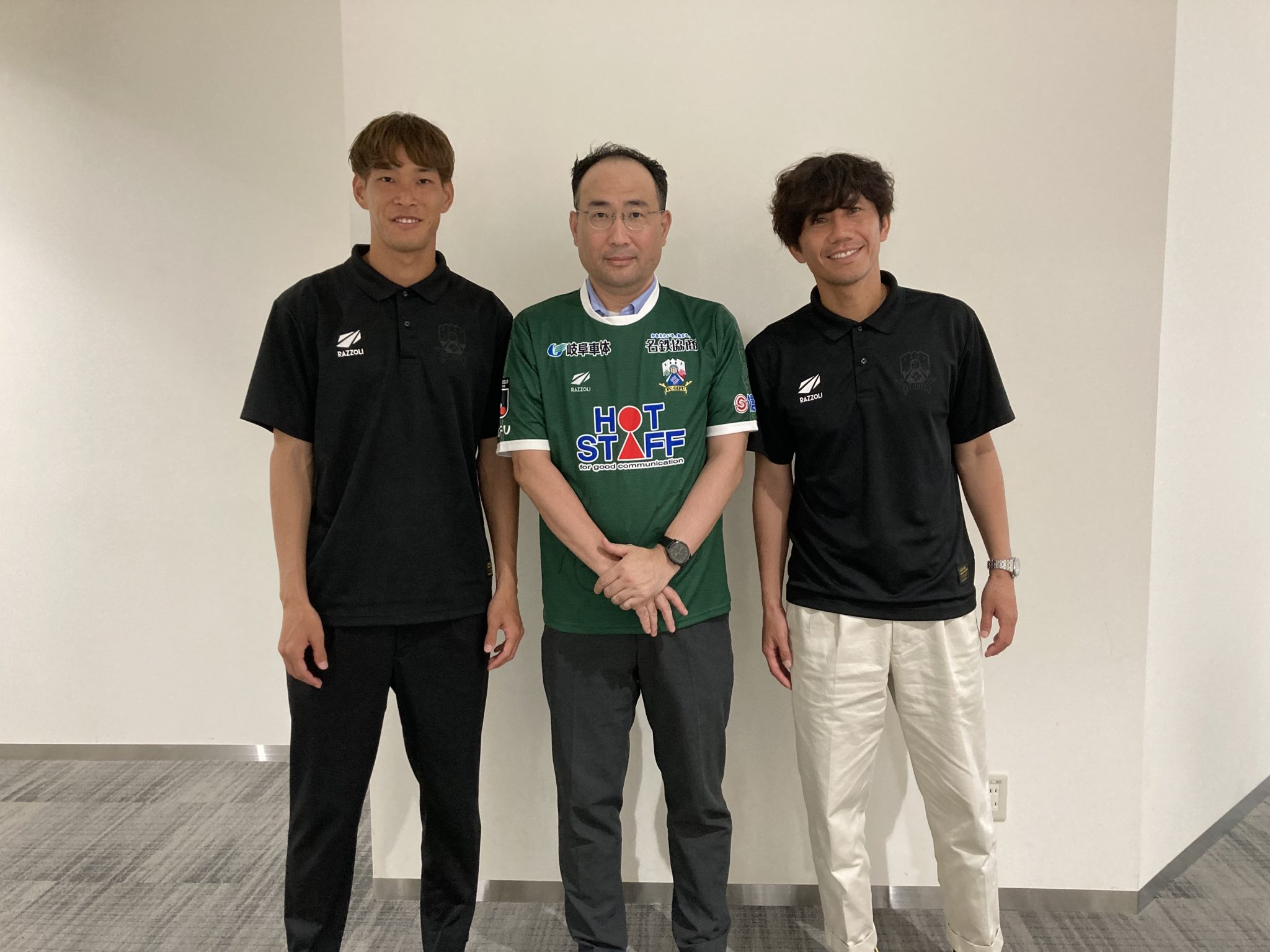 イベント終了後、株式会社バローホールディングス 常務取締役 篠花 明 様に柏木 選手と藤谷 選手のサイン入りユニフォームを贈呈させていただきました。