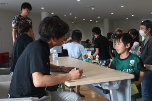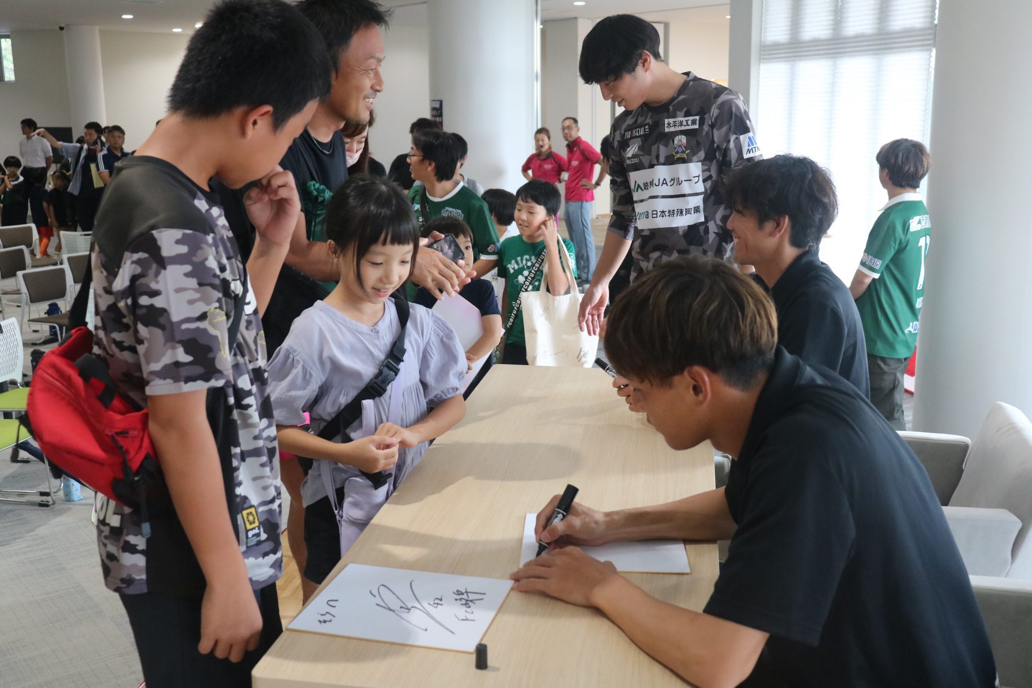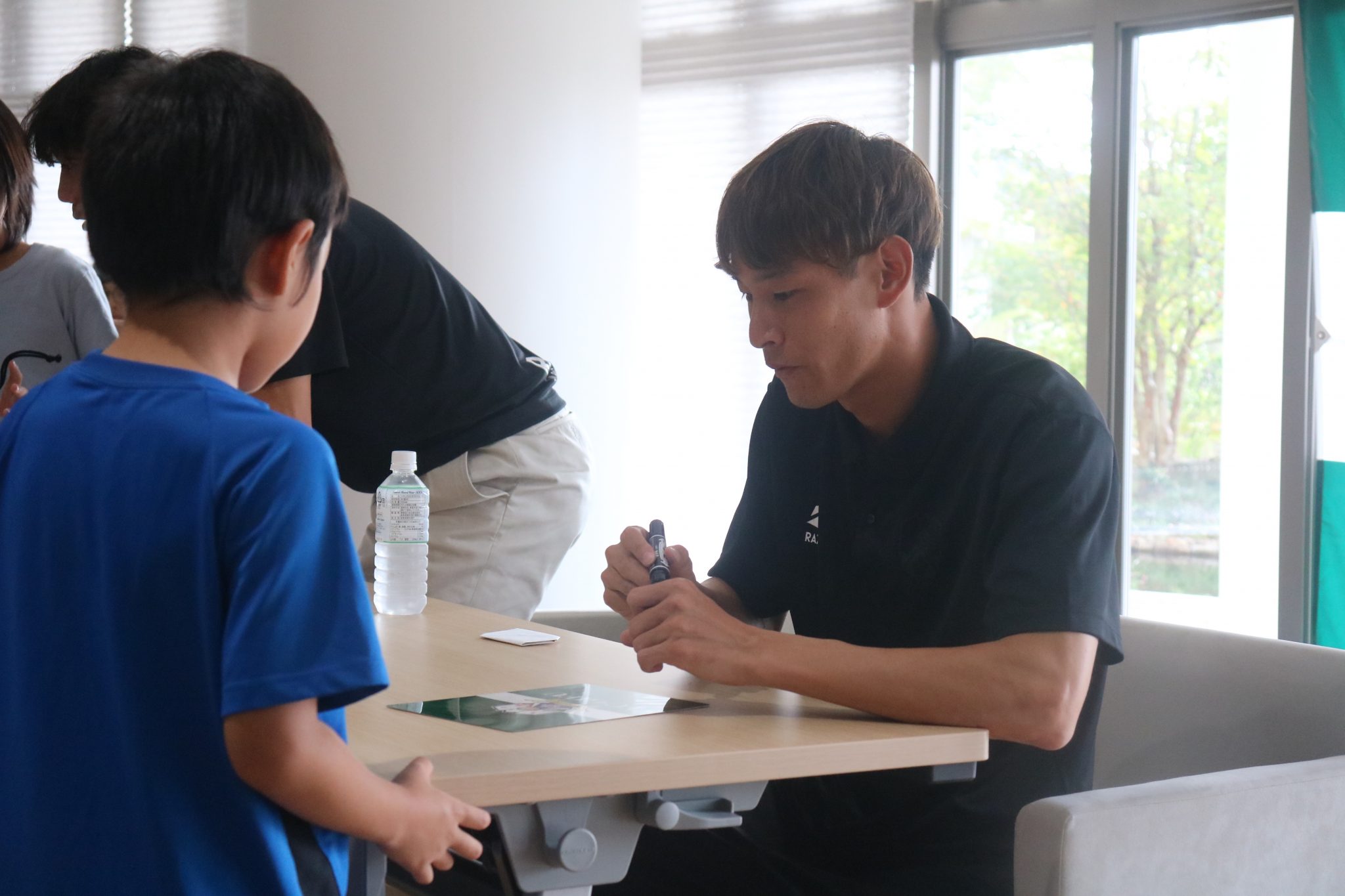 柏木 陽介 選手と藤谷 匠 選手のサイン会を行いました。参加者の皆さまは色紙やユニフォームなどにサインを貰い、大変喜ばれていました。