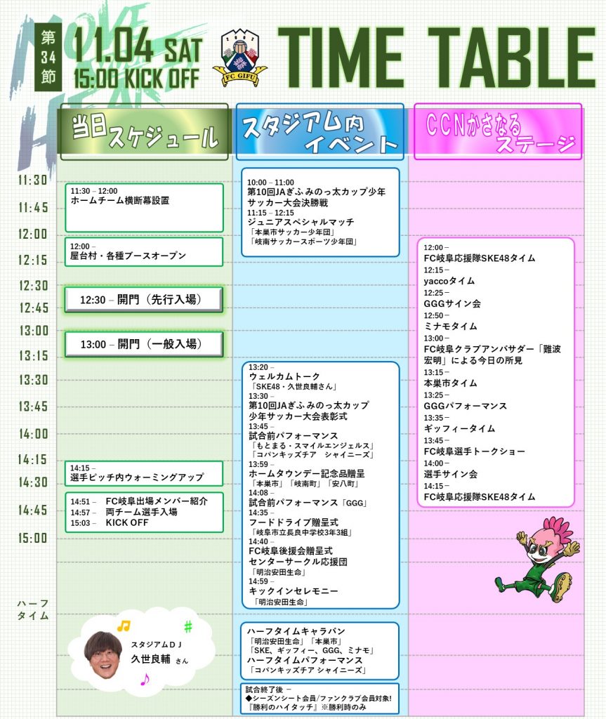 FC岐阜応援隊の『SKE48』から隊長の北野瑠華さん、副隊長の太田彩夏さん、伊藤実希さん、西井美桜さんが来場し、スタジアムを華やかに盛り上げます!『 SKE48 』来場