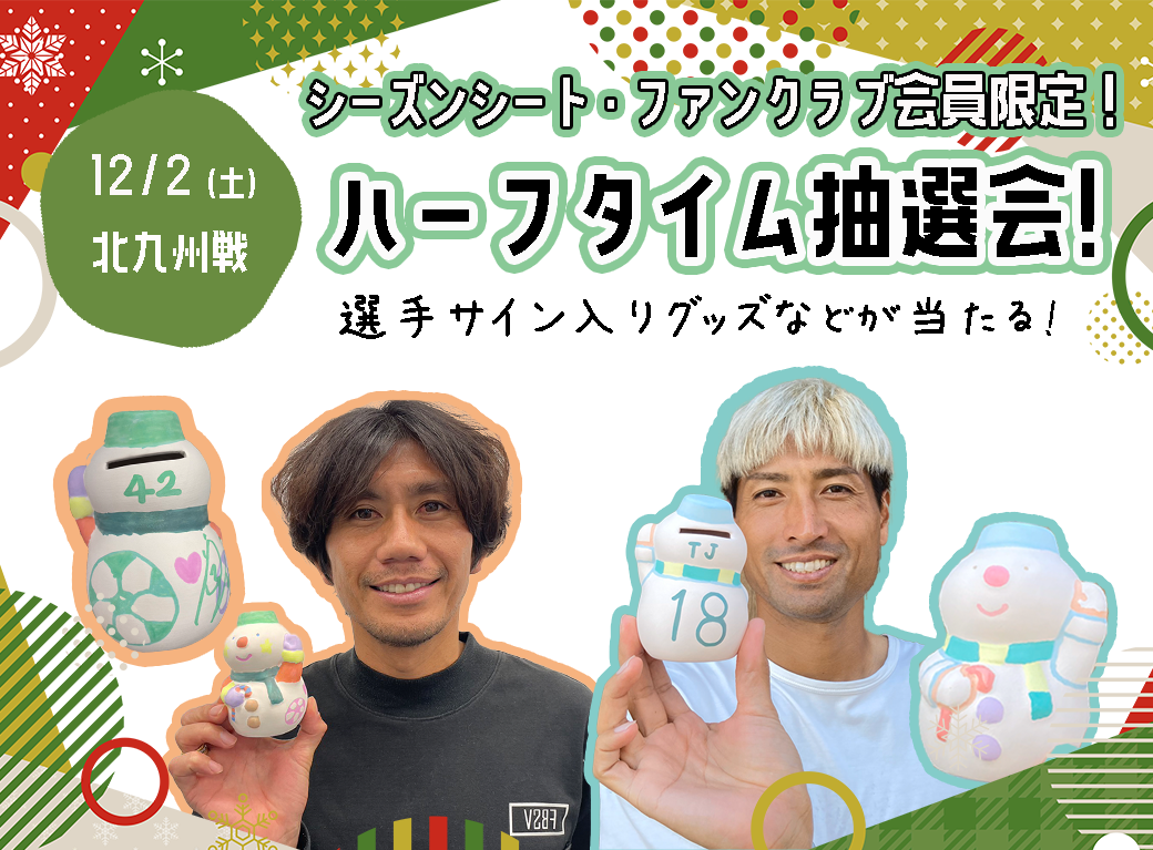 12/2(土)北九州戦、『シーズンシート・ファンクラブ会員限定!選手サイン入りグッズなどが当たるハーフタイム抽選会』実施のお知らせ