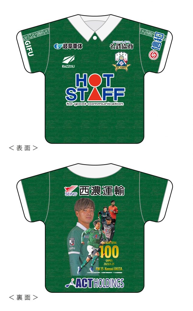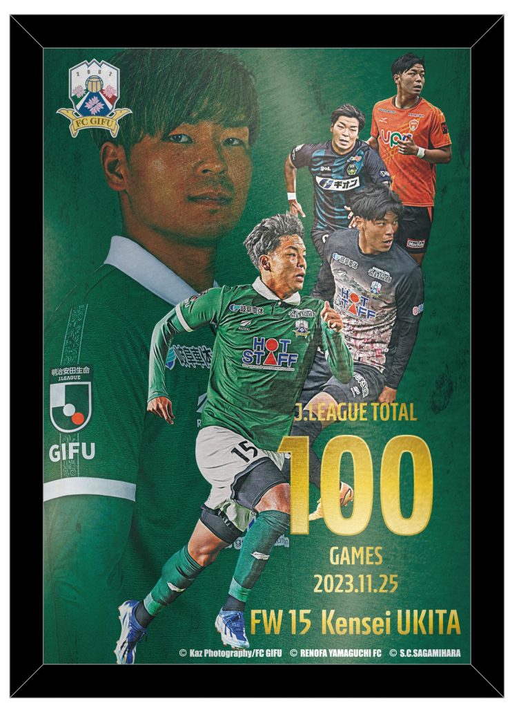 11月25日(土)に開催されました2023明治安田生命J3リーグ 第37節FC琉球戦において、浮田 健誠選手がJリーグ通算100試合出場を達成いたしました。これを記念してグッズの受注販売が決定しましたので、お知らせします。