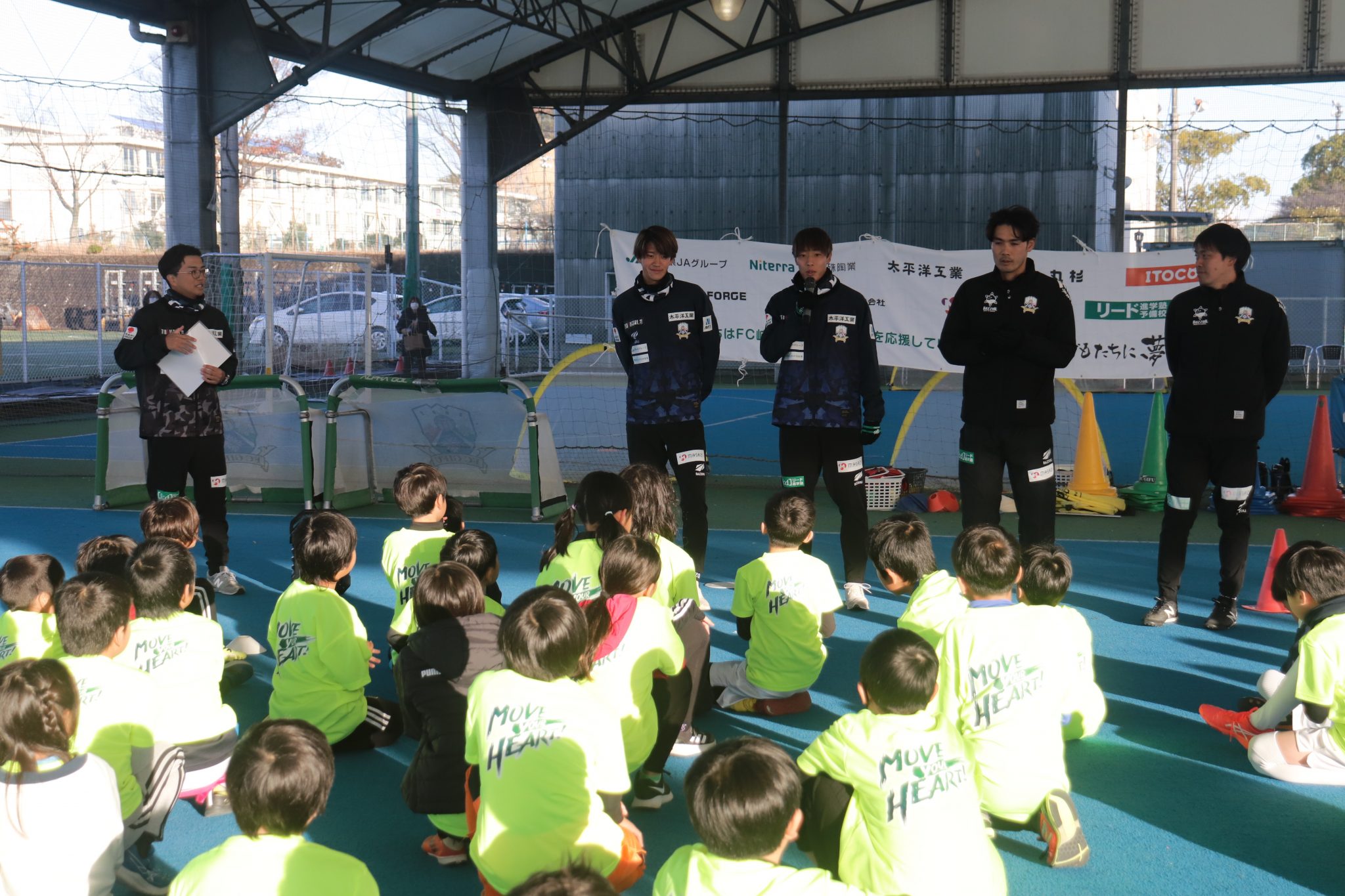 当日は、北 龍磨選手と松本 歩夢選手が参加し、サッカー教室を盛り上げてくれました。