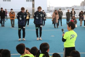 サッカー教室後には、選手への質問タイムやじゃんけん大会を行いました。