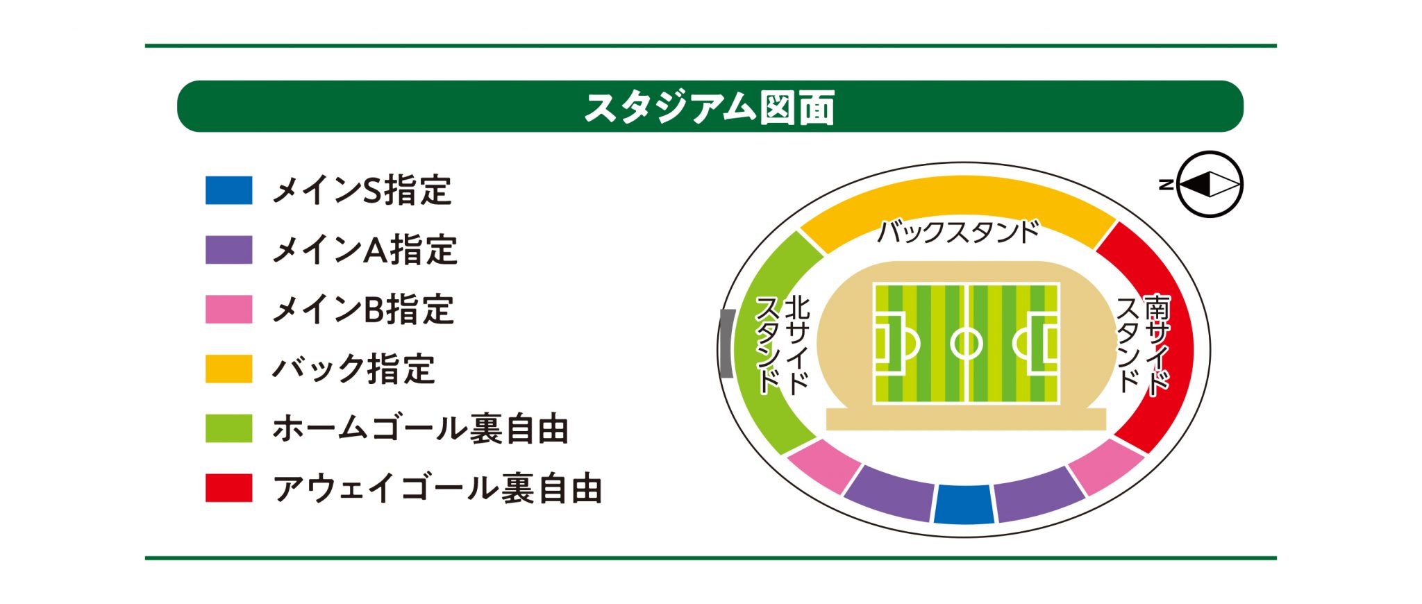 「メインS指定」、「メインA指定」、「メインB指定」、「ホームゴール裏自由」のチケットをお持ちの方