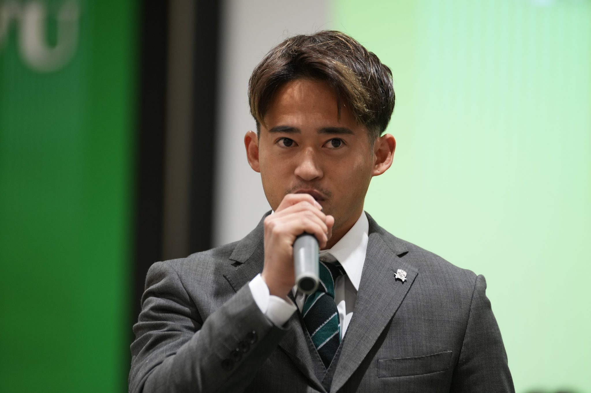 「初めまして。仙台大学から加入しました、與那覇航和です。ポジションはミッドフィルダーです。J2昇格に向けて全力で頑張りたいと思います。よろしくお願いします。」