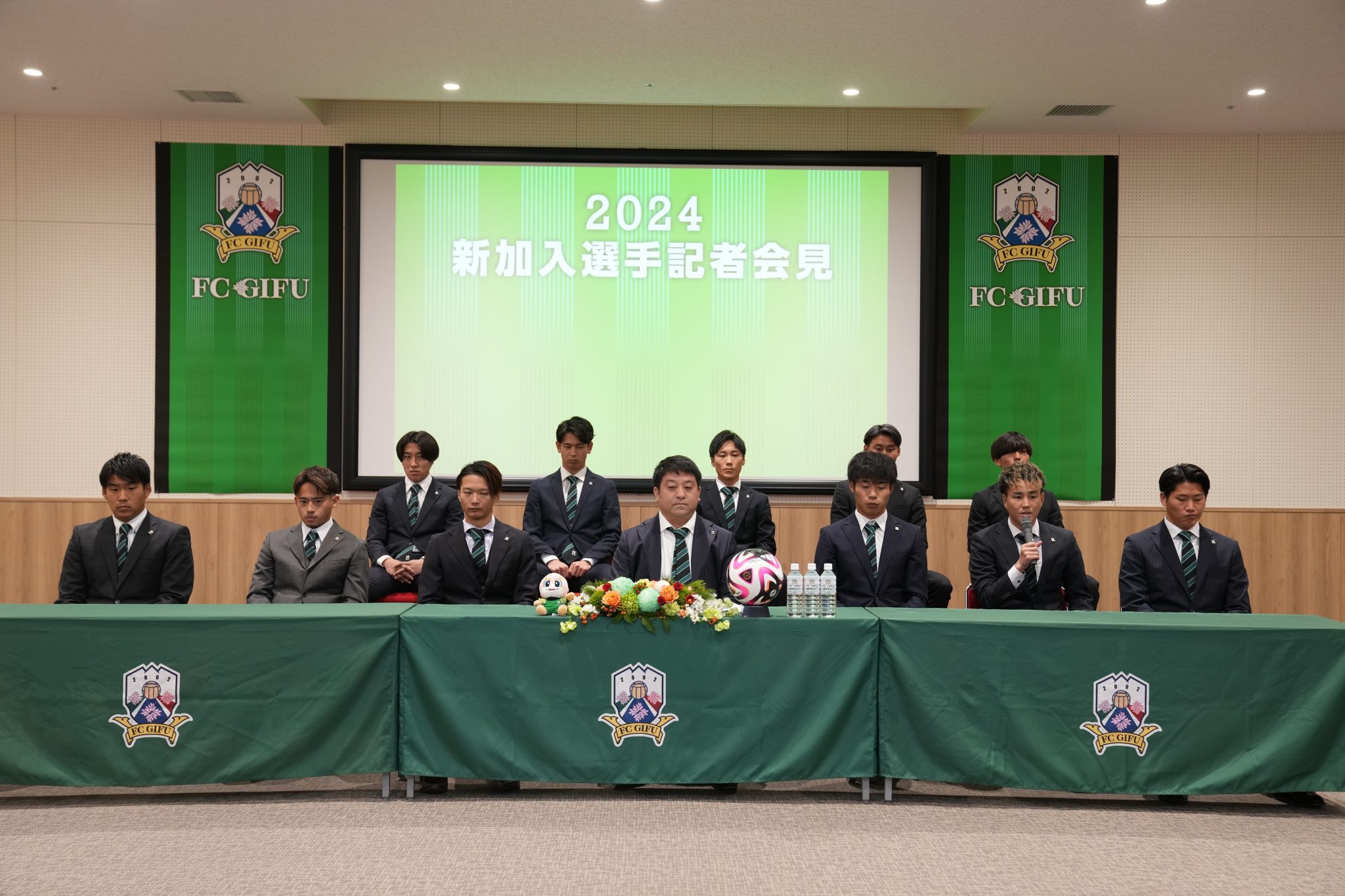 新加入選手記者会見では、小松裕志社長、新加入選手11名が出席いたしました。