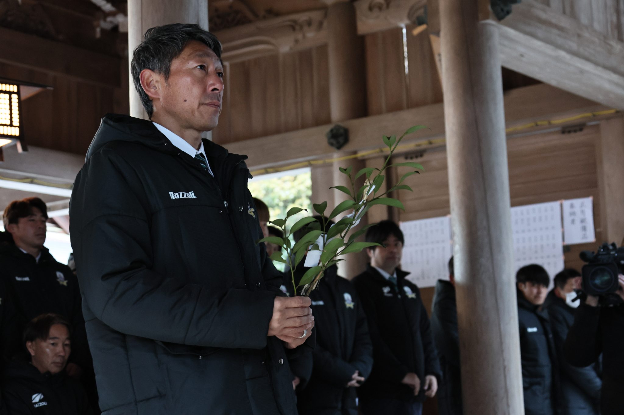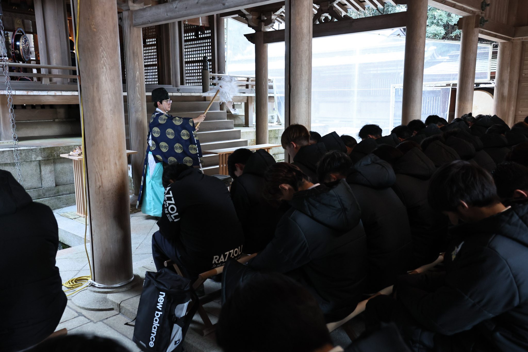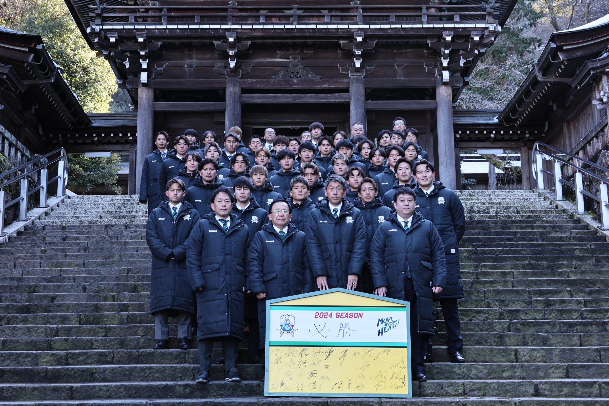1月9日(火)岐阜市の伊奈波神社にて、FC岐阜後援会 副会長の川島政樹様、FC岐阜 宮田博之会長、小松裕志社長、上野優作監督、選手、チームスタッフ、フロントスタッフが、今シーズンのチームの勝利と安全を祈願して必勝祈願を執り行いました。