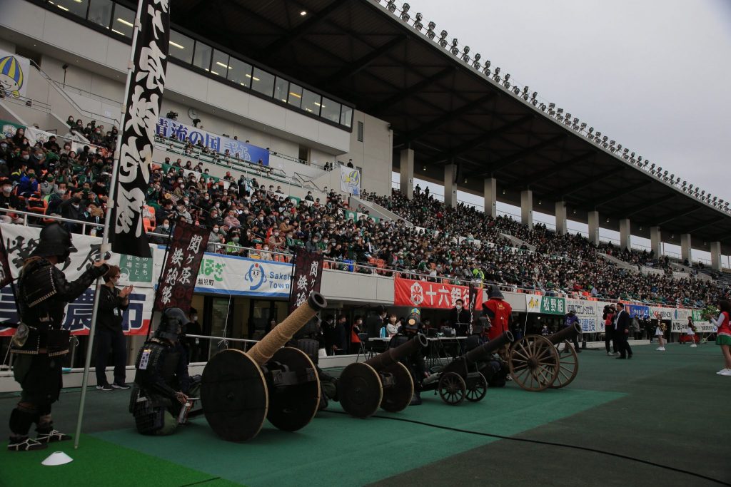 関ケ原鉄砲隊が来場し、FC岐阜の2024シーズンの出陣を大砲で盛り上げます!