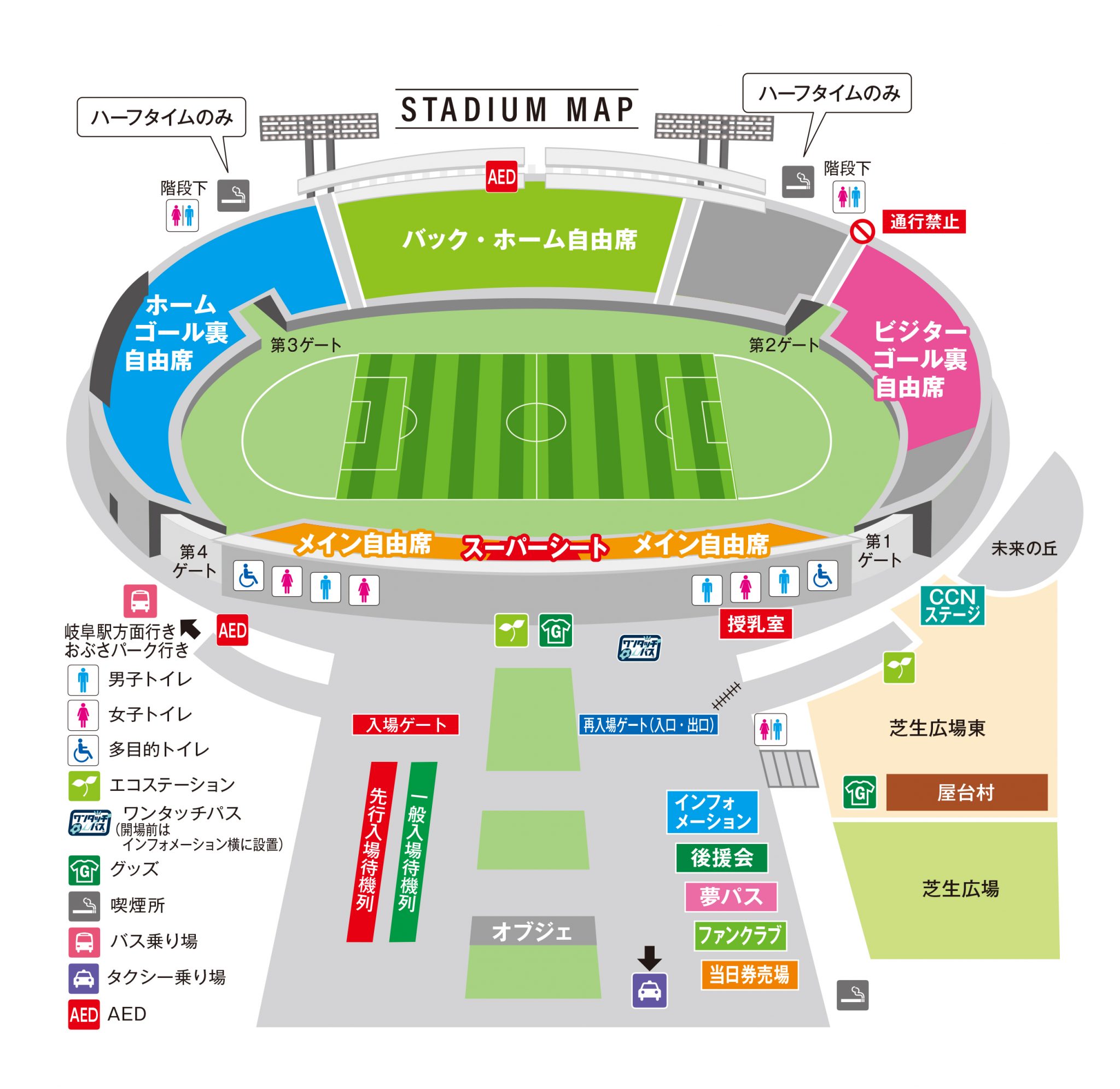 当日の駐車場状況については、FC岐阜オフィシャルサイト又はFC岐阜公式X(旧Twitter)にて最新情報をお知らせいたしますのでご確認ください。