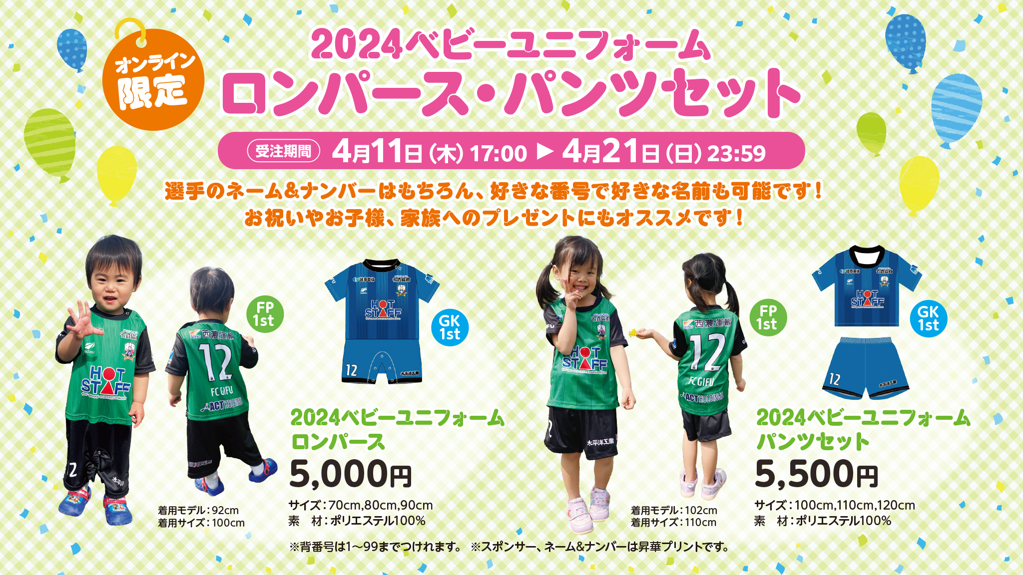 2024ベビーユニフォーム ロンパース FP1st、GK1st、2024ベビーユニフォーム パンツセット FP1st、GK1st受注販売が決定しましたので、お知らせします。