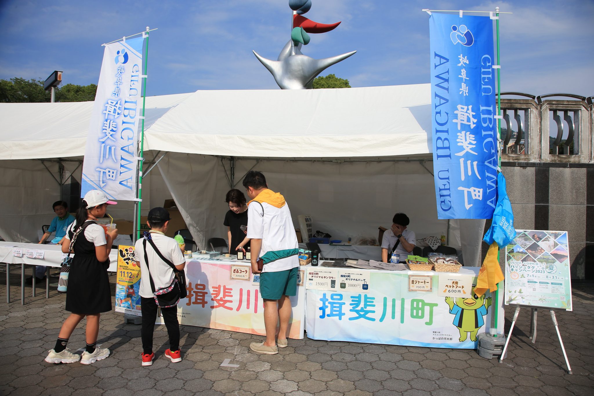 かーきぃ、徳山なんばみそ、鹿ジャーキーなどの揖斐川町グルメや揖斐川町グッズの販売をおこないます。