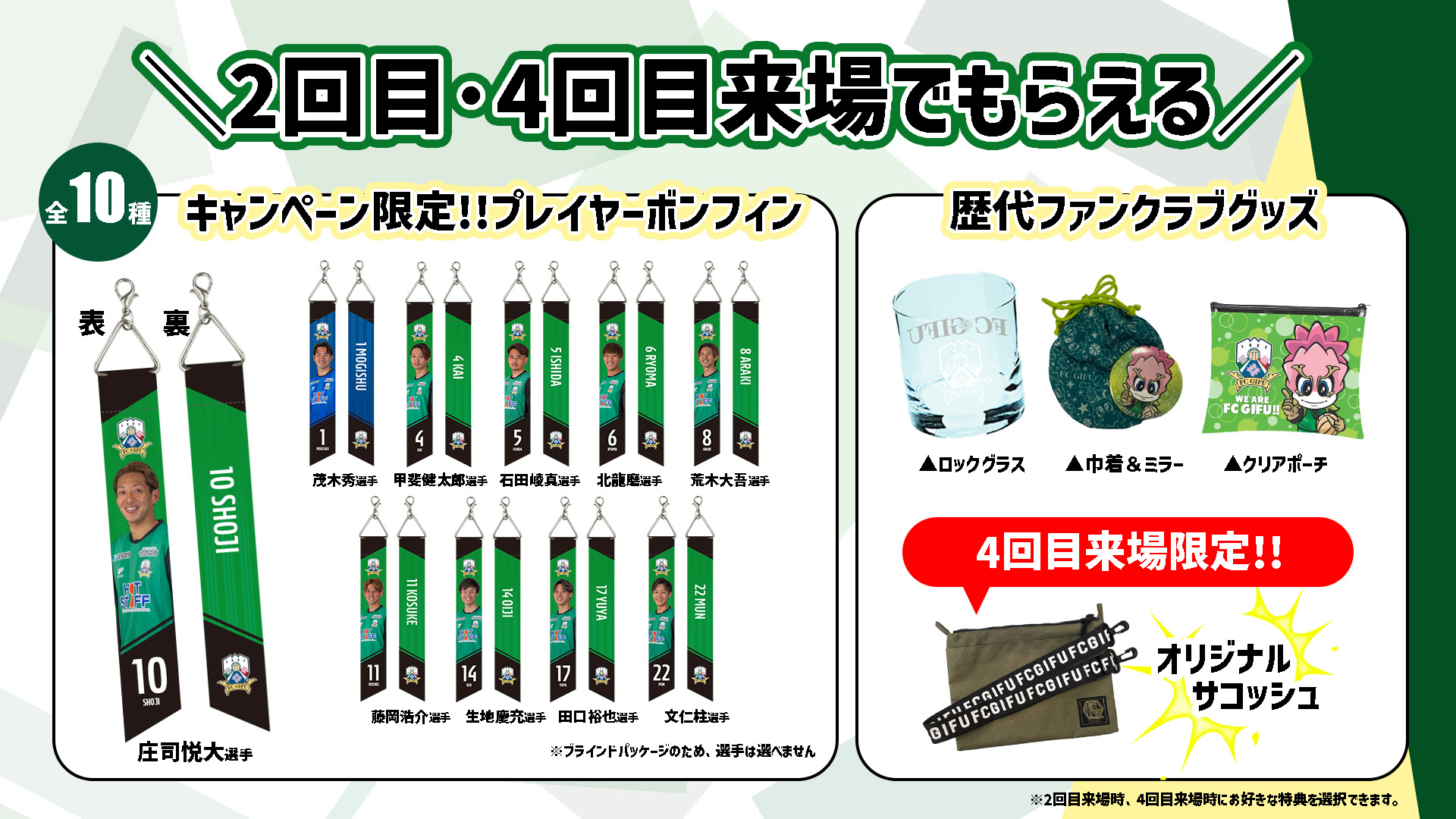 参加いただいた皆様には、FC岐阜タオルマフラー/バック・ホーム自由席チケット/岐阜市ホームタウンデー記念Tシャツをプレゼント!さらに、参加者の名から限定20組でピッチ内見学ツアーを開催。