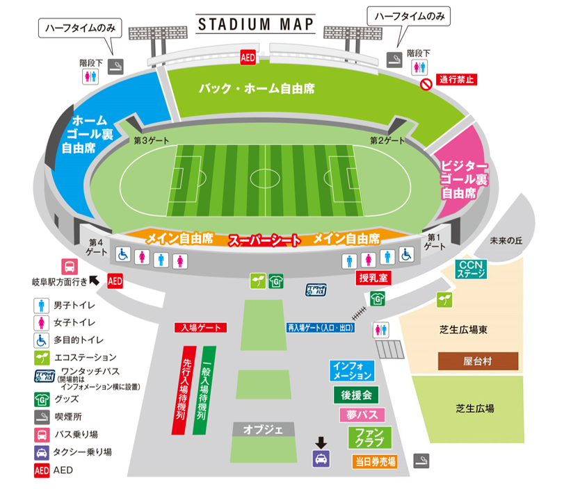 当日の駐車場状況については、FC岐阜オフィシャルサイト又はFC岐阜公式X(旧Twitter)にて最新情報をお知らせいたしますのでご確認ください。