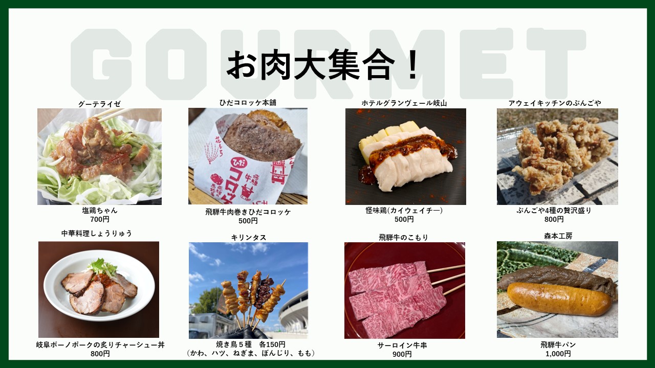 屋台村グルメ企画『お肉大集合!』を開催します。 大人気の限定メニューや初登場メニュー、ビールのおつまみにぴったりな商品まで豊富なラインナップ!売切れ必至なのでお買い求めはお早めに!