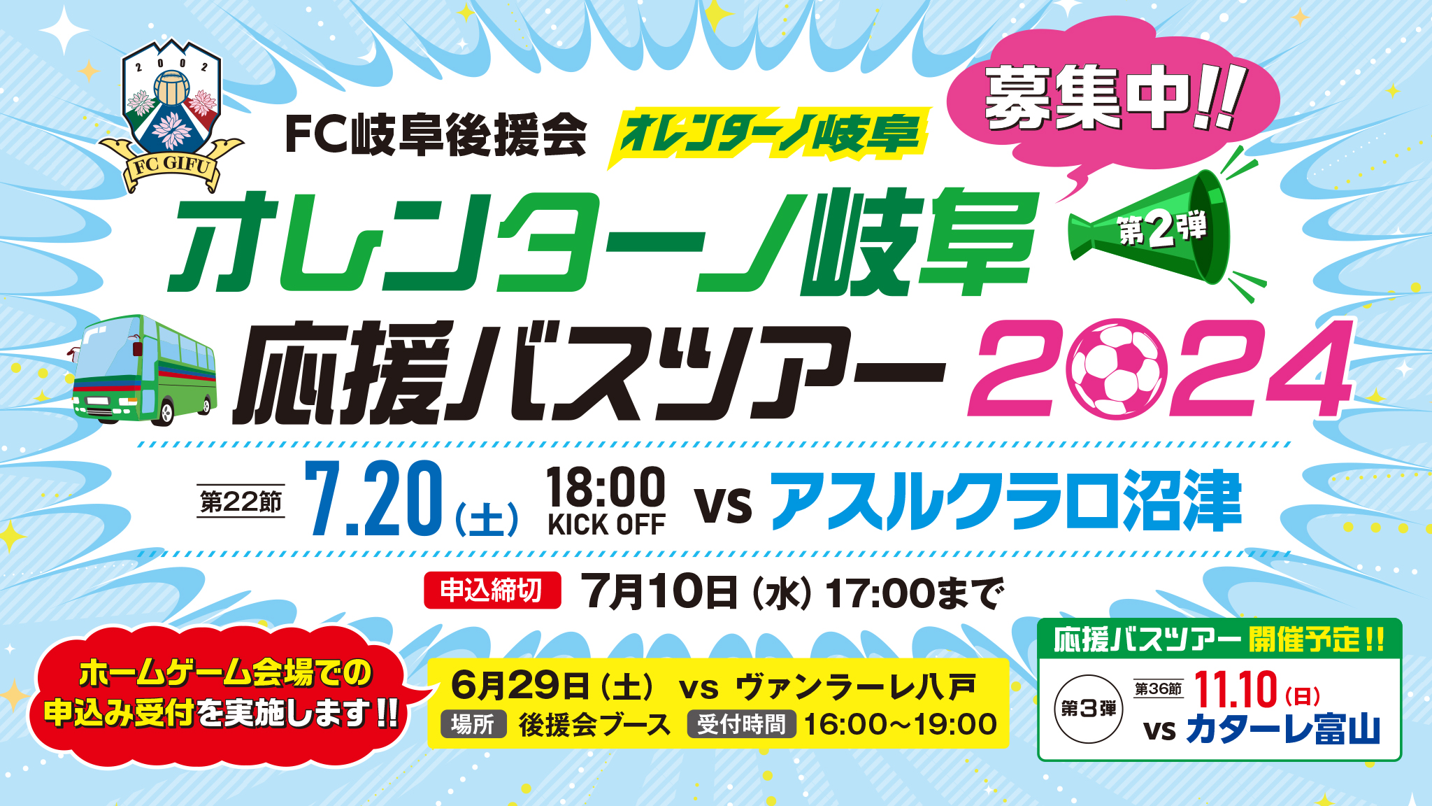 【スタジアム受付を追加実施!!】FC岐阜後援会主催!! アウェイ試合応援ツアー「オレンターノツアー 2024」募集開始のお知らせ