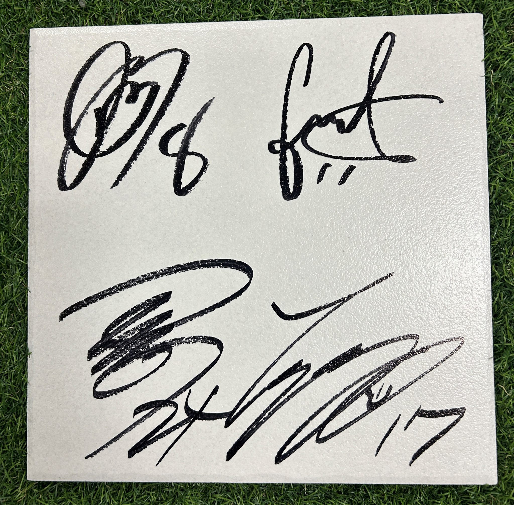 共通ハッシュタグ、パブリックビューイング会場のお写真、配布された抽選券番号の3点をXでポストまたはInstagramで投稿したお客様1名に荒木 大吾選手、藤岡 浩介選手、粟飯原 尚平選手、田口 裕也選手サイン入りの「みのやきタイル」を抽選でプレゼントいたします。